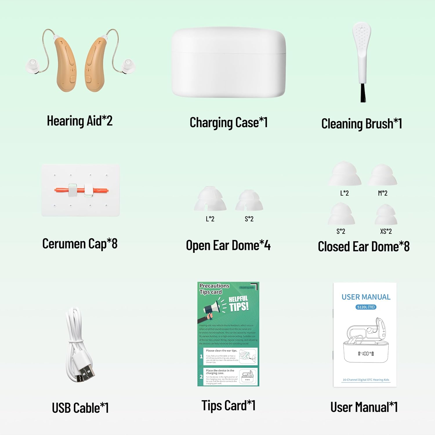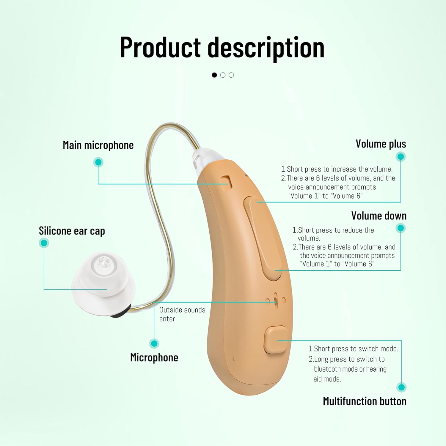 Review: I got these for a parent having some hearing issues and they worked well. They found them comfortable over the ear and once they played around with the positioning of them they got them in a nice spot that didn’t interfere at all with their glasses. We didn’t get to use app, we had an issue with getting the QR code read with their tablet but I think it was on our end and we still intend to try to get that fixed but to be honest they probably won’t use it. The aides themselves are very simple to use and adjust with the buttons on the side and you get verbal confirmations from them to confirm your actions so they were satisfied with them and how they were operating. They worked great, sound was loud and clear with them.I like the way they come in the charging case so you not only have a safe place to keep them but it makes charging really easy. The charge level is displayed on the front of the case which is a nice feature. Being a white light on a white case it’s a little difficult to see, but you can see it and it’s a common issue with this type of case. It comes with a selection of ear pieces so anyone should be able to find a size that works for them. They seem to be made well, all the connections were tight and all buttons adequately tight and operated properly.