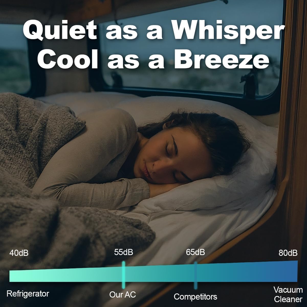 Whisper-Quiet 55.4 dB Operation – Enjoy peaceful sleep, work, or relaxation with a noise level as soft as gentle rain, far quieter than traditional RV air conditioners