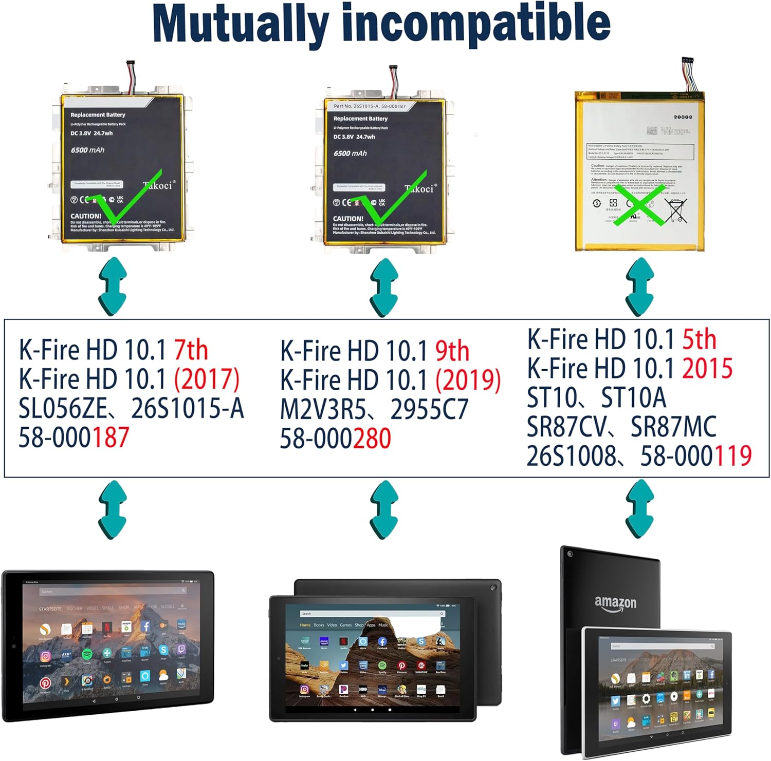 Important Warning : There are many versions of F’ire HD 10.1. Our batteries are only suitable for F’ire HD 10.1 7th (2017) and F’ire HD 10.1 9th (2019). They are not compatible with F’ire HD 10.1 5th. Please pay attention before purchasing and make sure your machine is compatible with our batteries.