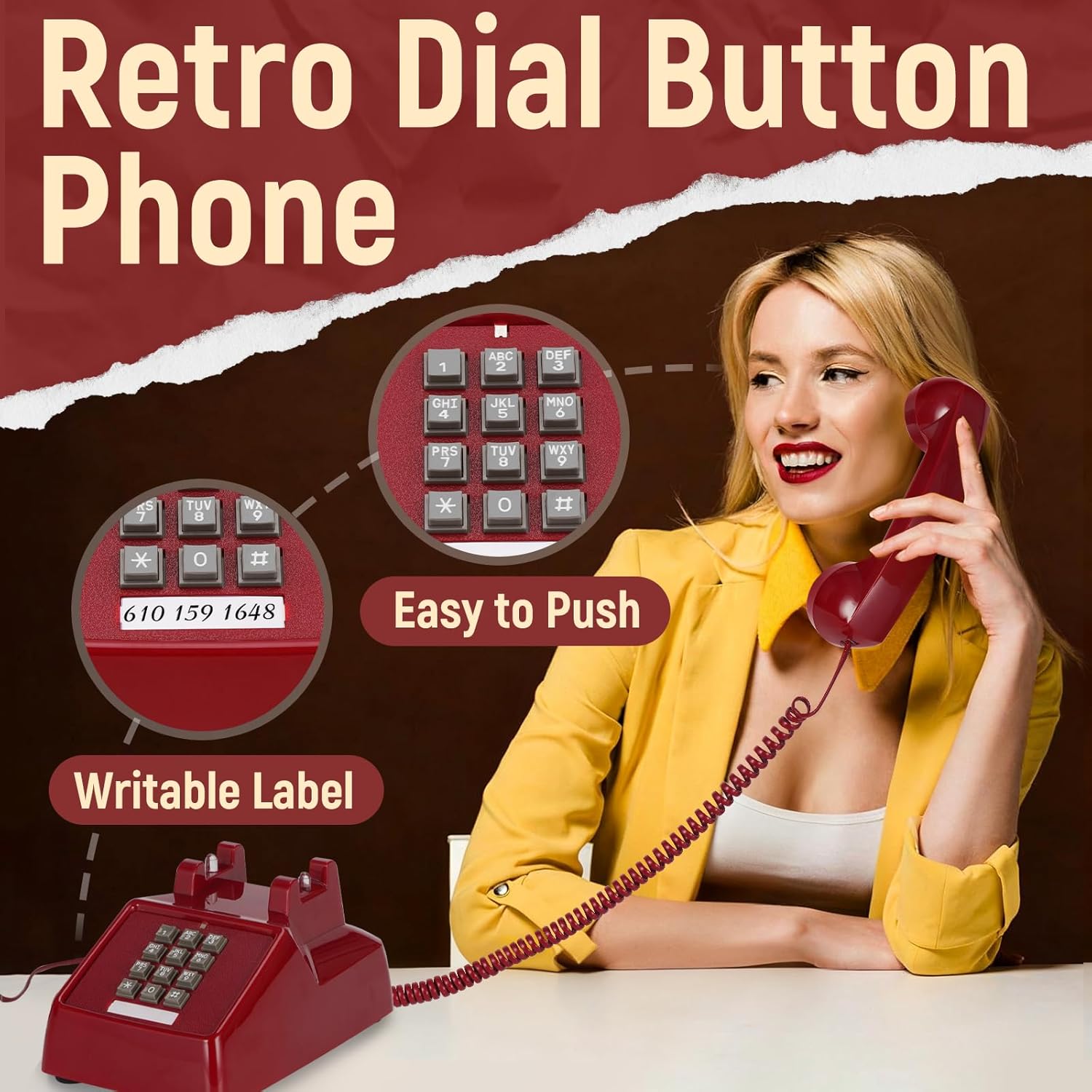, Office Products > Office Electronics > Telephones & Accessories > Landline Phones, #Retro #Corded #Telephone #Traditional #Vintage #Landline #Phone #80s #Classic #Desk #Pho..,