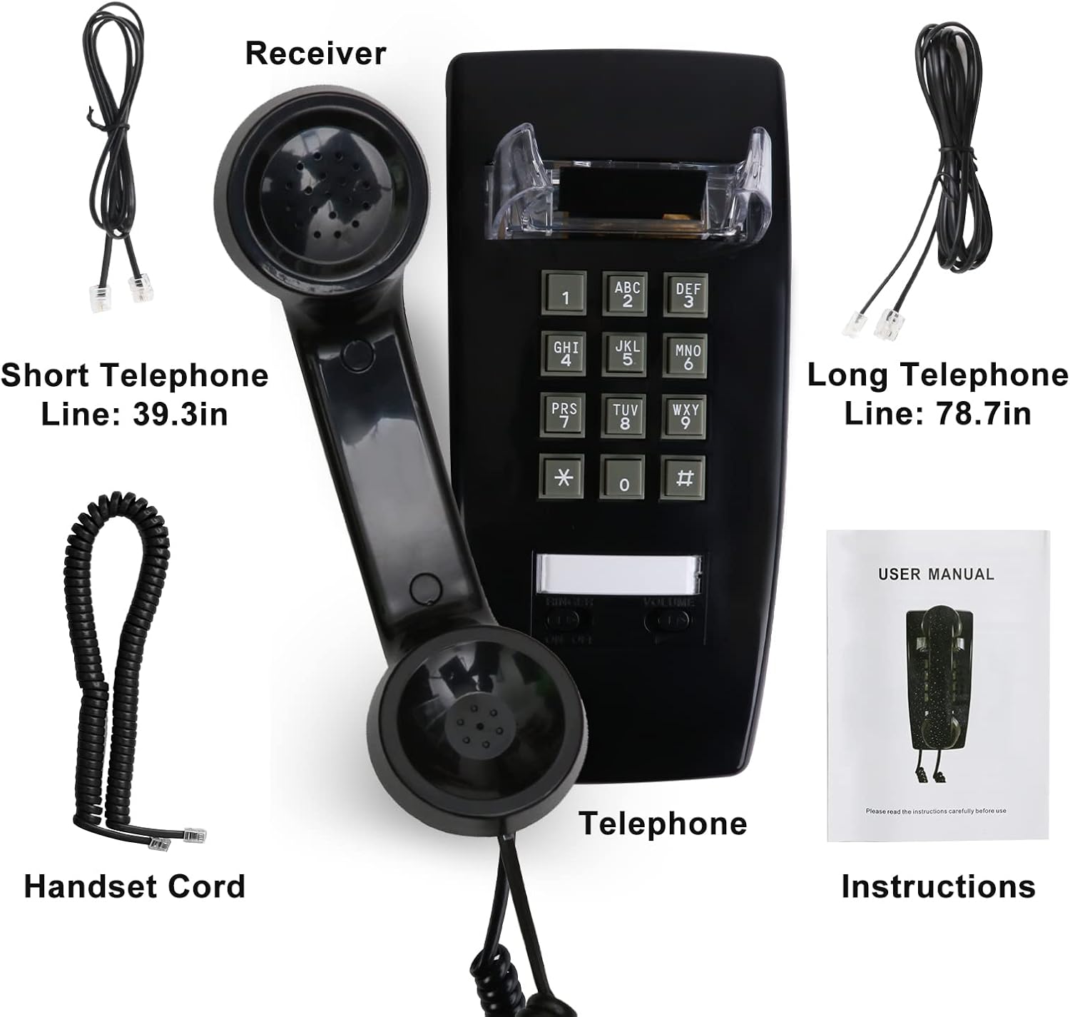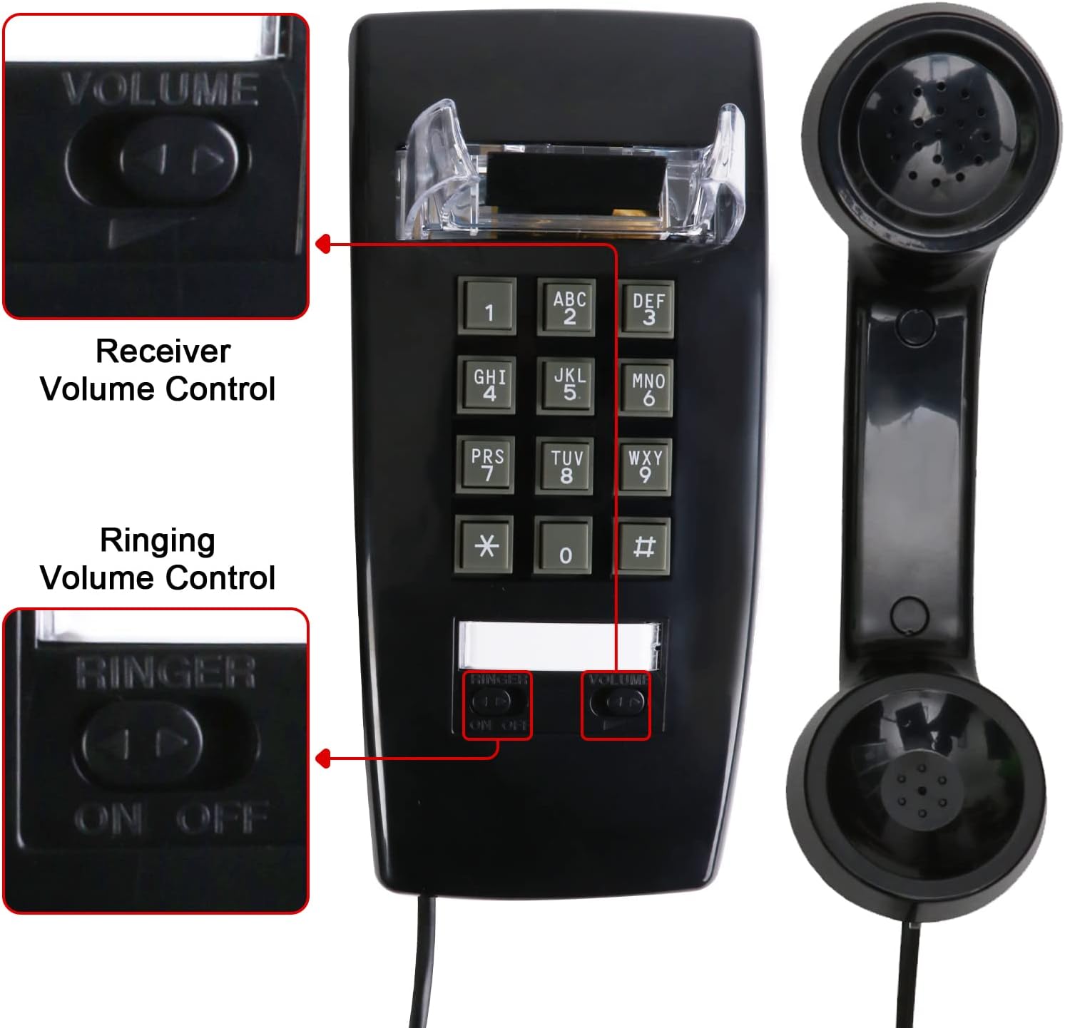 Review: This item was made from surplus phone parts. Poorly assembled and intermittent, I would avoid it. NOTE: It has a wrong socket in the rear that was modified to mount in a rectangular hole meant for a sliding mail plug that would access the wall mount. Internal solder connections were poor and intermittent. The handset “hanger” was not assembled properly.I needed the phone to work, so I reworked parts of it until I could purchase a new, guaranteed AT&T phone. BEWARE! This cheap phone is available under numerous brand names. Check the photos and be savvy. Either buy an old TELCOwall phone that has been tested OR get a new, guaranteed phone that can be returned to a store, replaced or repaired.