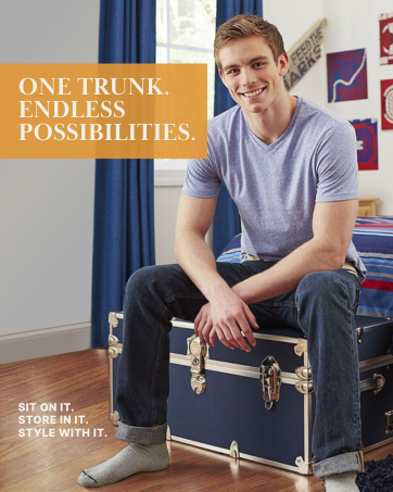 TOUGH AS A RHINO: An excellent trunk for summer camp bunks & college dorm rooms. Handles 1000+ lbs. Made in the USA from 3/8" Birch plywood, leather embossed vinyl & steel hardware - Comes assembled.