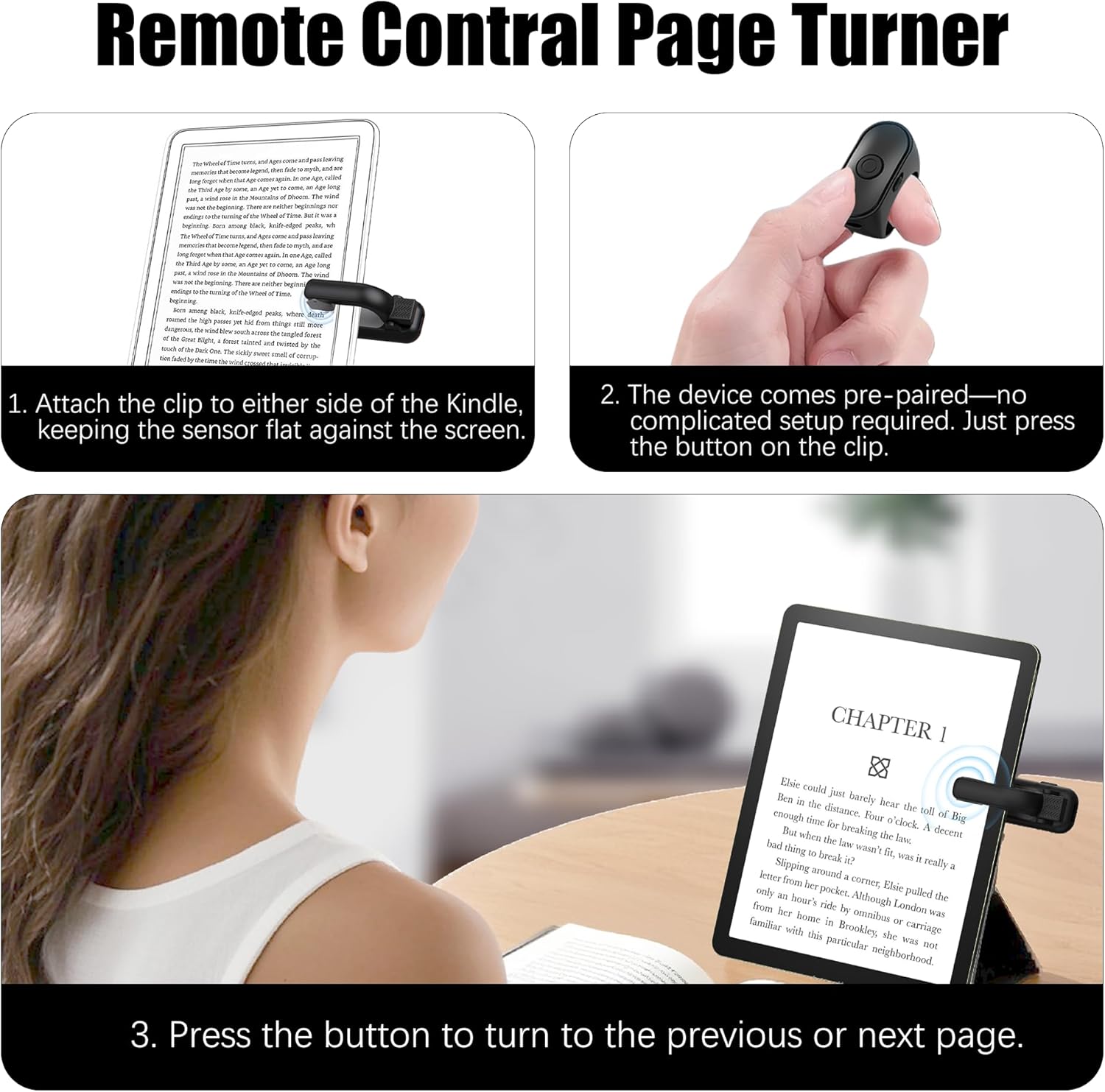 【Comfortable Reading】Turn pages hands-free with RF technology—no Wi-Fi or Bluetooth required. Perfect for reading in bed or on the couch. It works as far as 100ft/30m away.
