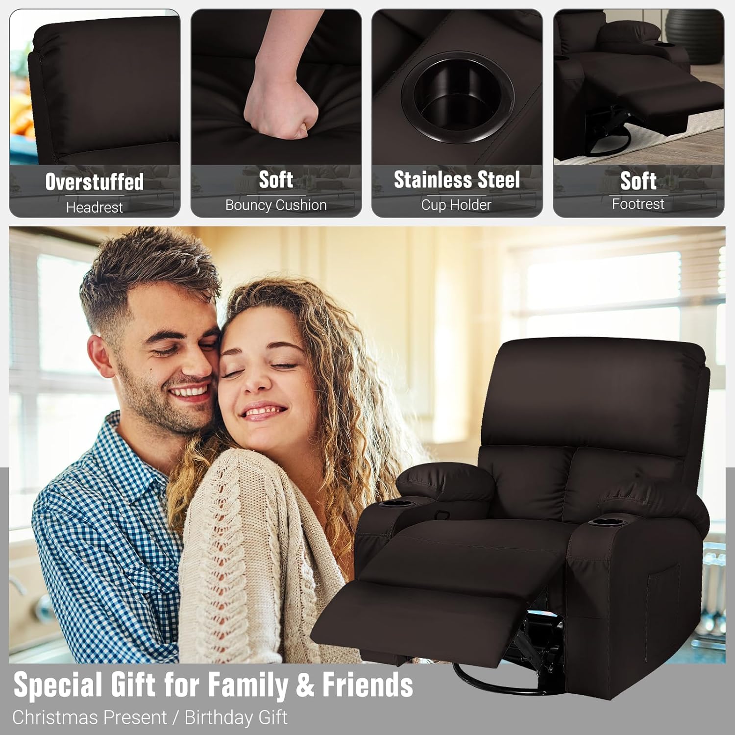 Review: We love our chair. Very comfortable. Excellent color that matches our sofa. Was delivered in 2 parts but very easy to assemble. Perfect size chair. Very sturdy. Love the fact that it’s a rocker/swivel recliner. Also love that the lever release is in the inward part of chair and not outward due to the little grandchildren who are very curious. Didn’t realize until after assembly that chair is vibrating/heating massage chair which is a great “plus” for my achy back. Awesome price for what you get. The only thing I had a problem with was in the beginning chair felt “stiff” when you recline it but with more use it doesn’t remain that way. Overall…LOVE this chair😍