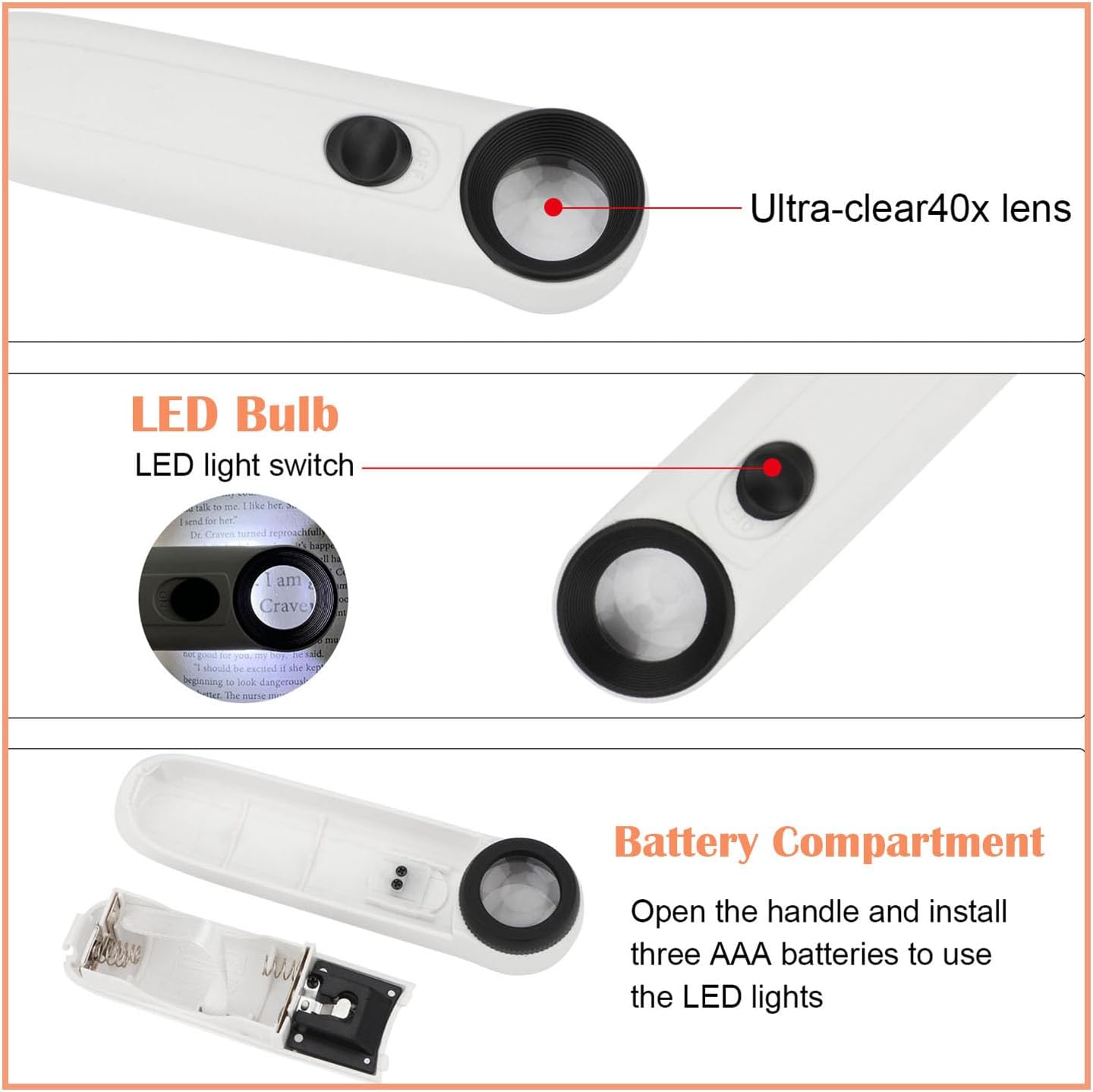 High Power Magnification: This magnifying glass provide 40X magnification, it is a great magnifying equipment for daily reading.