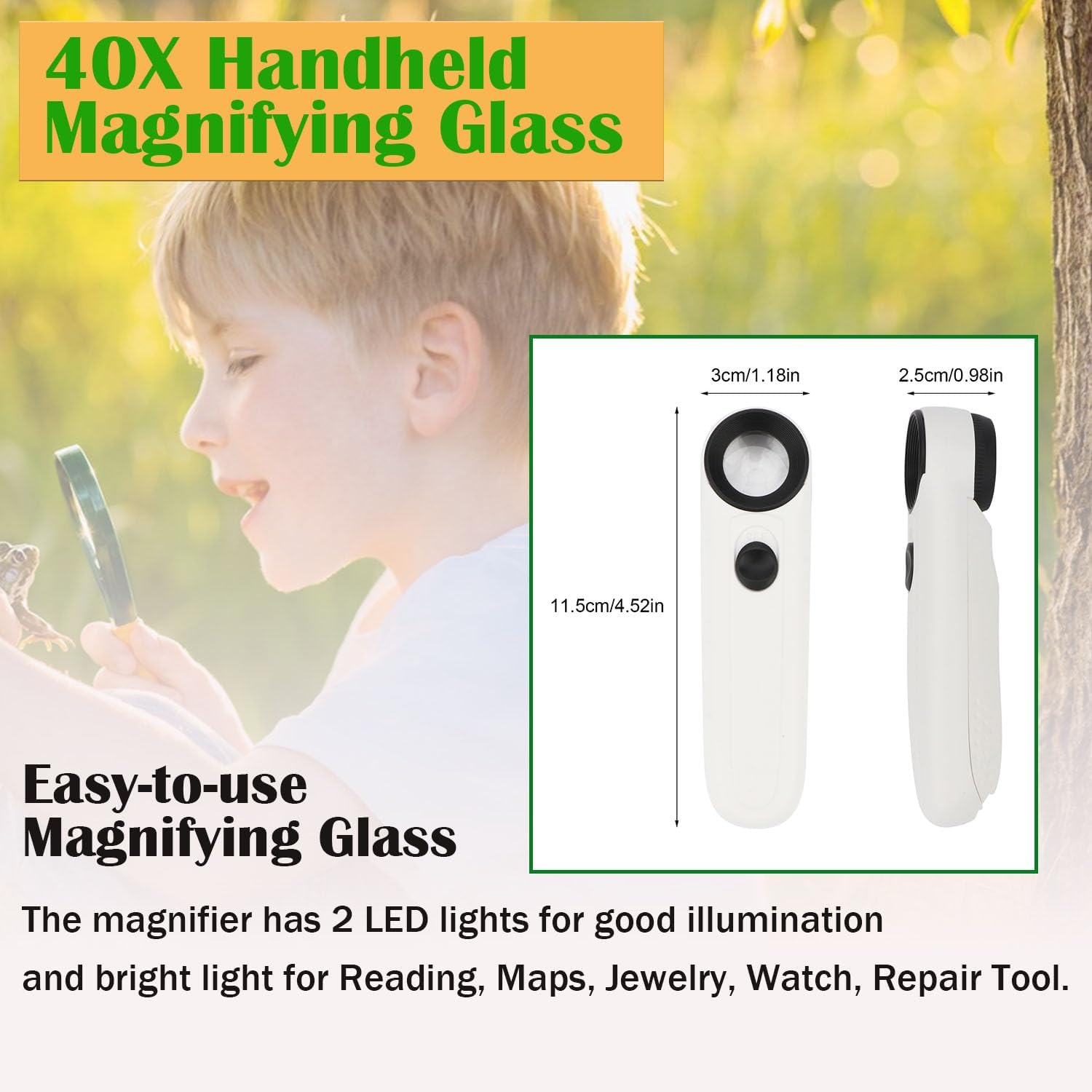 , Arts, Crafts & Sewing > Model & Hobby Building > Accessories, Hardware & Tools > Magnifying Tools, #Rongon #40X #Handheld #Magnifier #High #Power #Hand #Held #Illuminated #Magnifying #Glass,