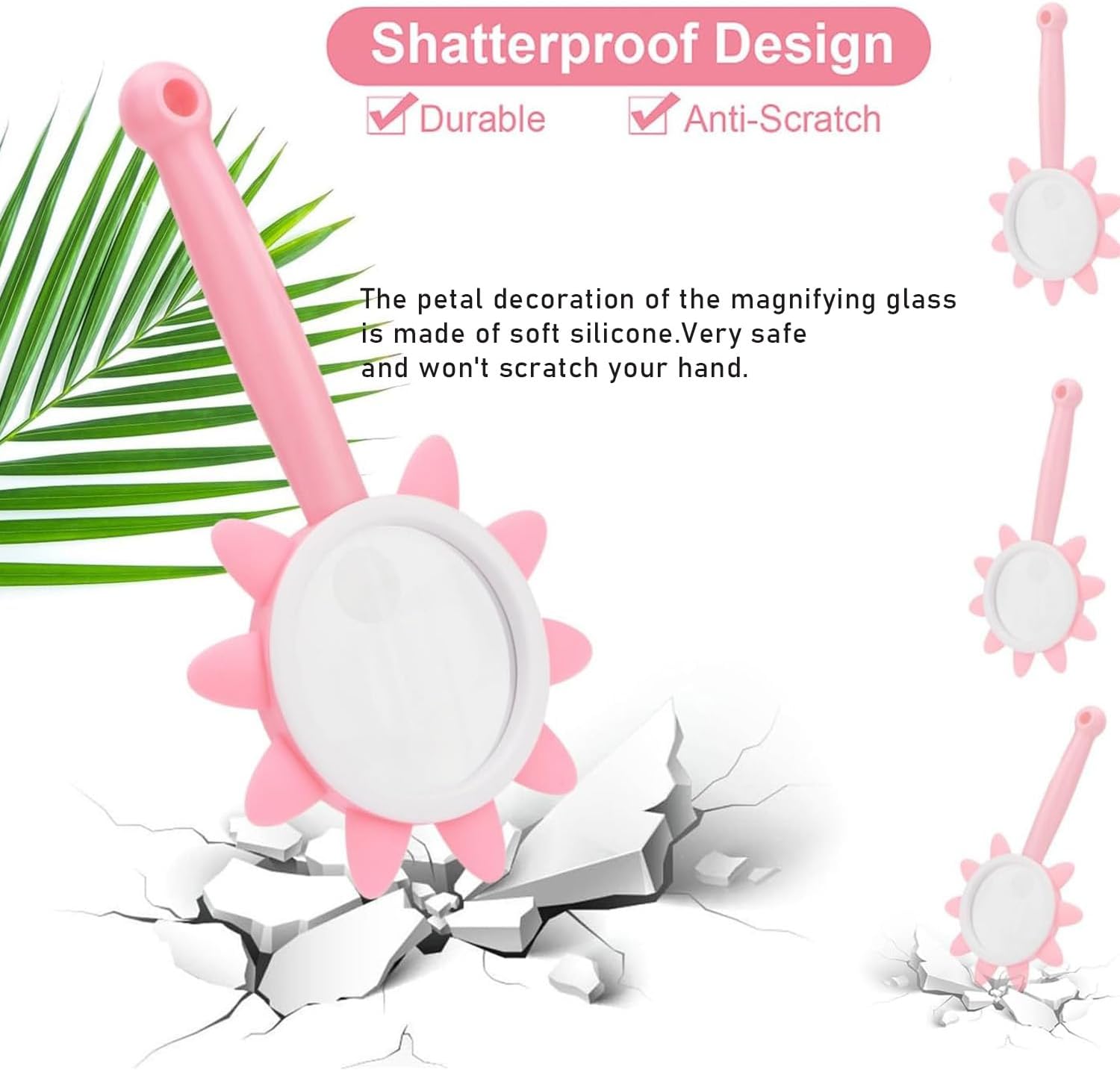 Review: I picked this up to review because my kids have a Mystery Solvers magnifying search book where we lost the magnifying glass …. so I thought this could be a great upgrade. It does magnify things, but I think I thought 10x magnification was going to be more. I like the handle, and the glass is a great size to actually look at things through. This would be a great tool for any outside adventurer.I also thought it was quite clever of the designer to have the “flower petals” be flexible silicone… because you know kids will get too close to things and bump into them. This creates a fun buffer of sorts to anything that could break the glass….. or being inevitably dropped during said adventure. I think it’ll find its way into our beach bag this summer – see what kids of cool things we can take a closer look at during a beach day!