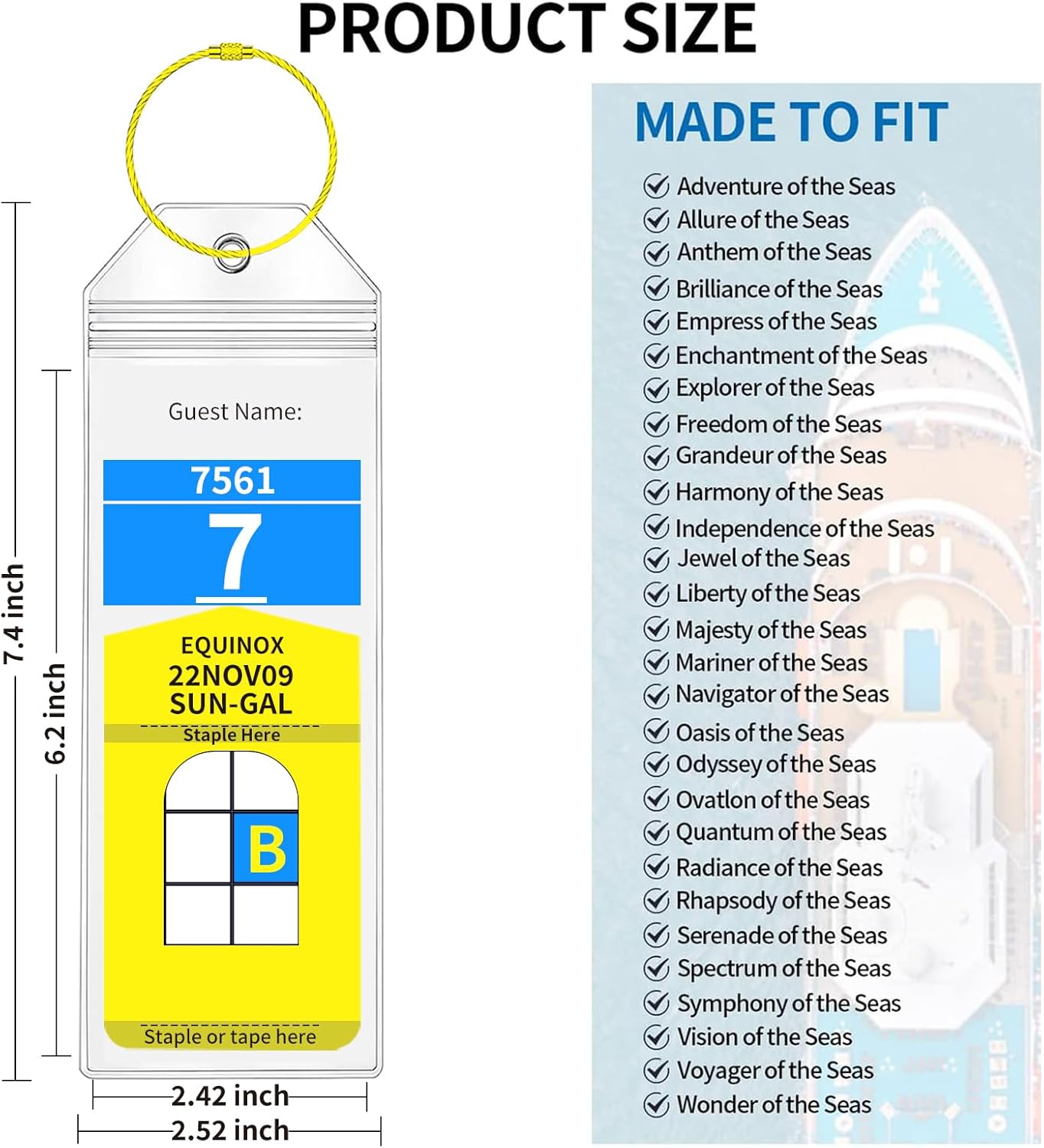 【Weather Resistant】: Our Royal Caribbean luggage tags holder is made of high-quality plastic makes cruise luggage tag easy to read and come outfitted with a weather resistant zip-top seal to keep your luggage tags label clean and raining proof throughout your trip, no matter rainy and bad weather damage