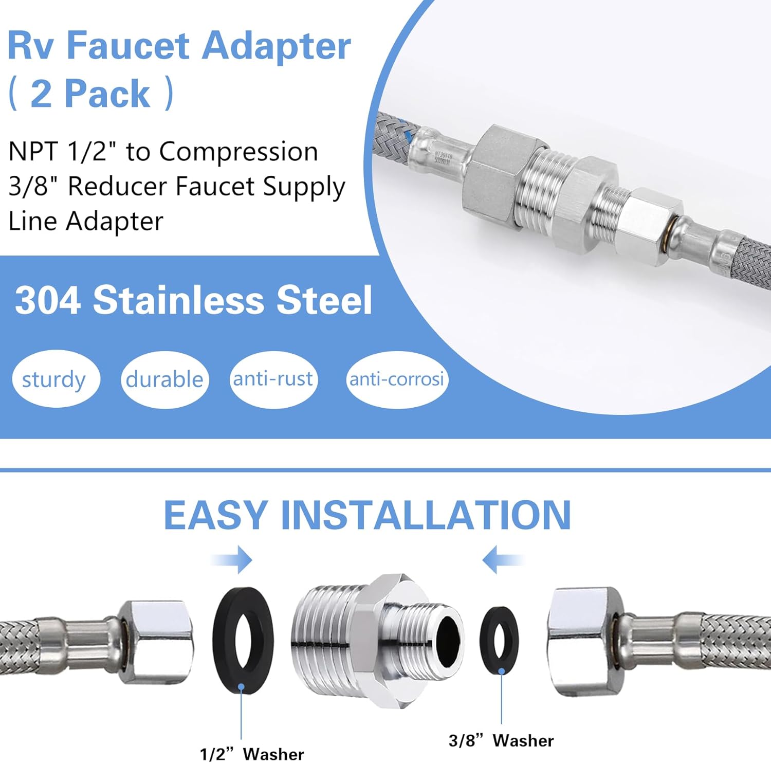 Rv Faucet Adapter,NPT 1/2″ to Compression 3/8″ Reducer Fauce…