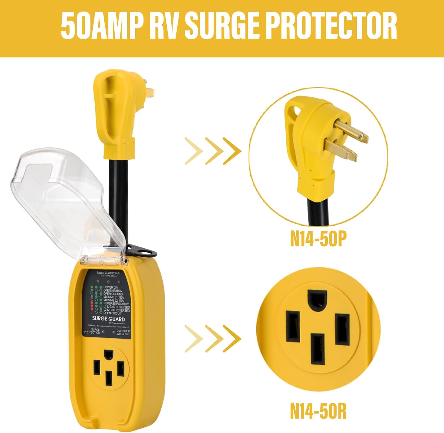 Easy Plug-and-Play Design:designed for convenience,this 50A RV surge protector is easy to use,simply plug it in for safe and straightforward operation