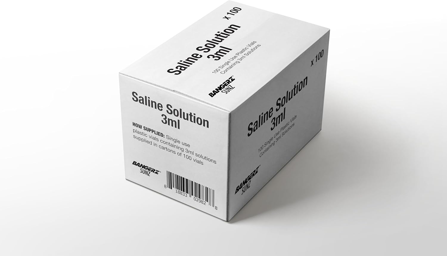 B08NQ56PJB, Bangerz Sunz Saline Solution 3ml, 100 per Box – Cannot be used with nebulizer.