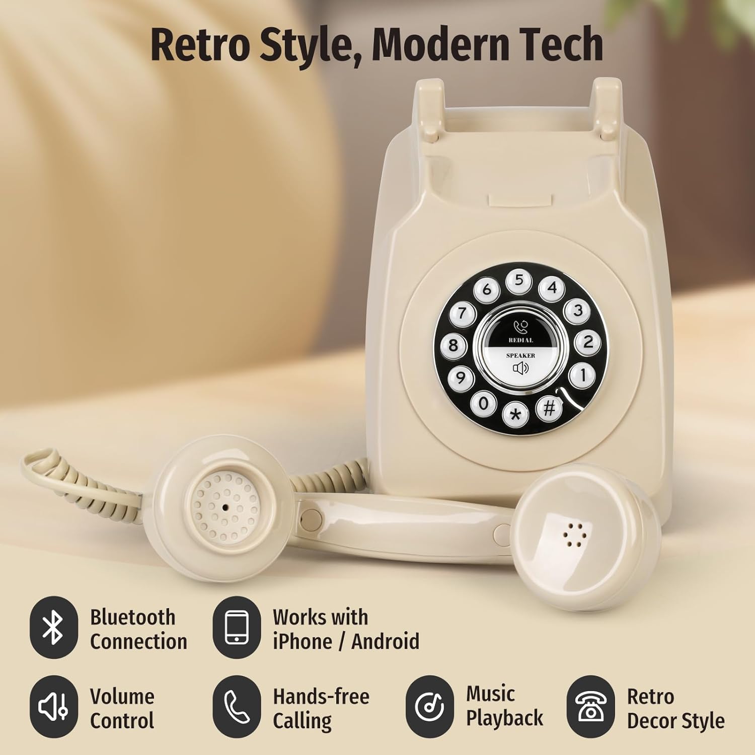 Review: This phone works great and looks really cool on my desk. I like the retro style but it still connects to my phone with Bluetooth, which is really convenient. The sound is clear on both the handset and the speakerphone, and pairing it with my phone was quick and easy.The USB rechargeable battery is also a nice feature. It is simple to use and feels well made. Overall I’m really happy with it and would definitely recommend it.I get compliments on it all the tkme