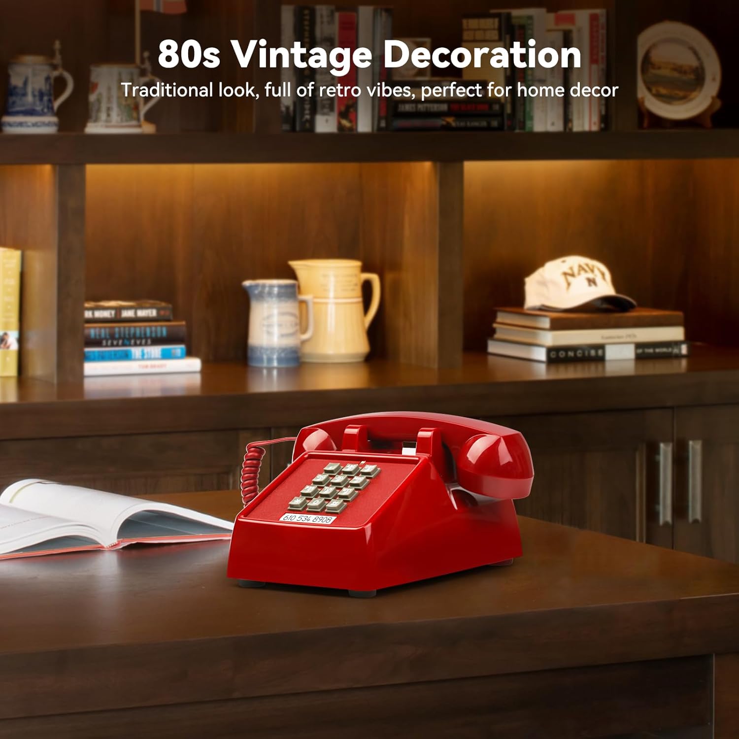 Review: I had a similar phone growing up that was close to this color but I think it was faded due to it being old. However, when I ordered this, I thought it was going to be too orange than red but when it came in, its actually a really pretty red. We bought this because our house has a working landline so I thought I’d buy this so the kids could experience this type of phone. Not only do they love using it, but when it rings, it still has the same ring as mine did as a kid. Underneath there is a switch to turn off the ringer too. When someone does call, there is a volume slider to change the volume but everyone always comes out so clear. Using this is super easy and the buttons are just the same as they used to be when I was a kid. This is an actual functioning and working phone and not for display purposes either. The size of this is perfect for our counter and doesn’t take up much space at all. Overall, really good quality too.