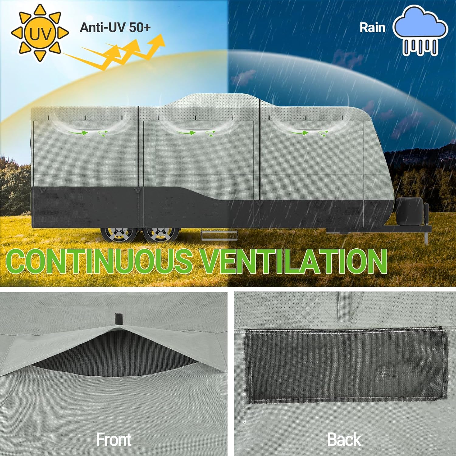 Complete Protection Kit Included: Comes with everything you need: RV cover, storage bag, jack & ladder covers, 2 adhesive repair patches (dark & light grey), extra wind ropes, full buckle system, and 6 sponge-designed gutter protectors.