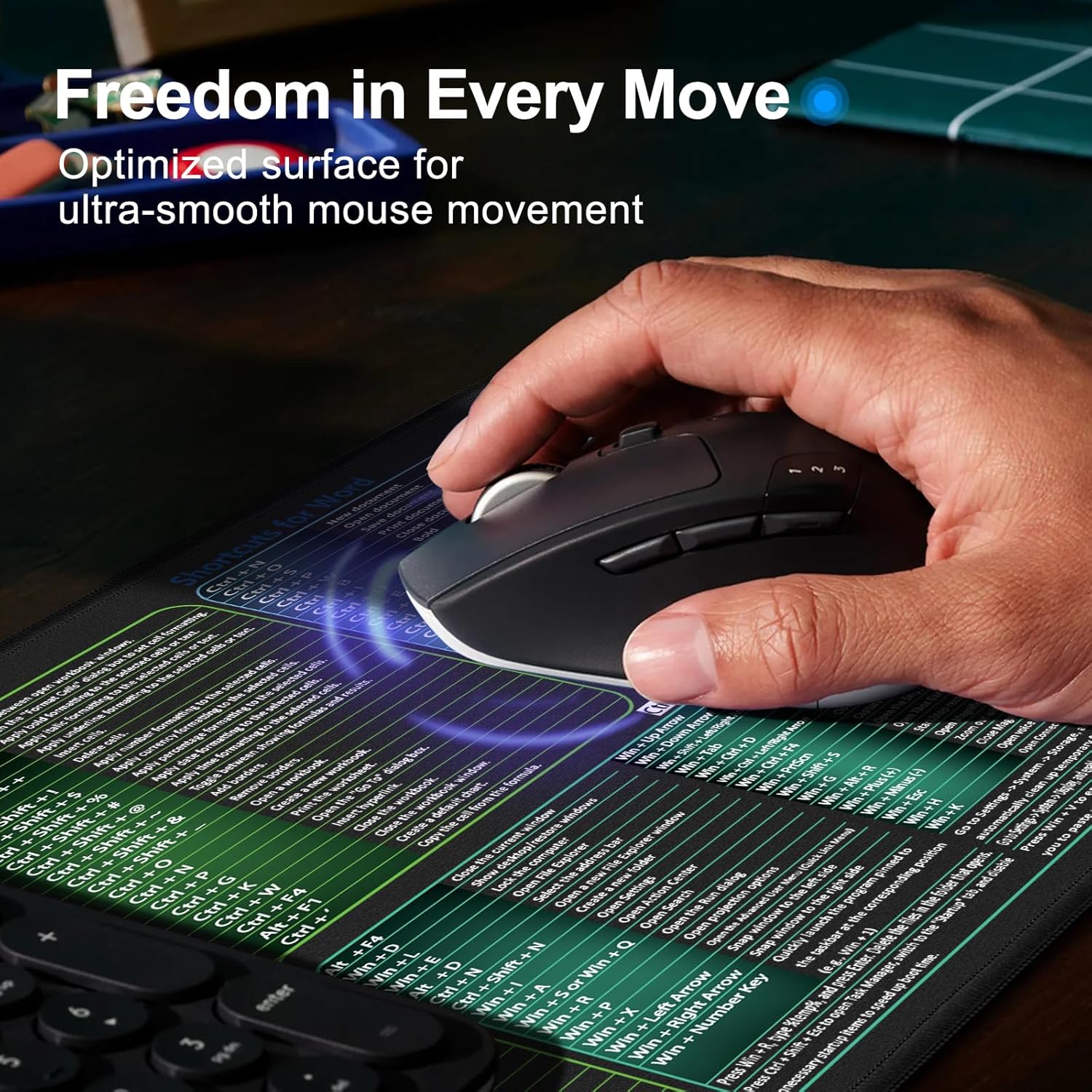 The mouse pad integrates essential shortcuts for Excel, Word, Windows, and PowerPoint, clearly organized by function. Printed with high-definition technology, the text remains sharp and easy to read—even after extended use.