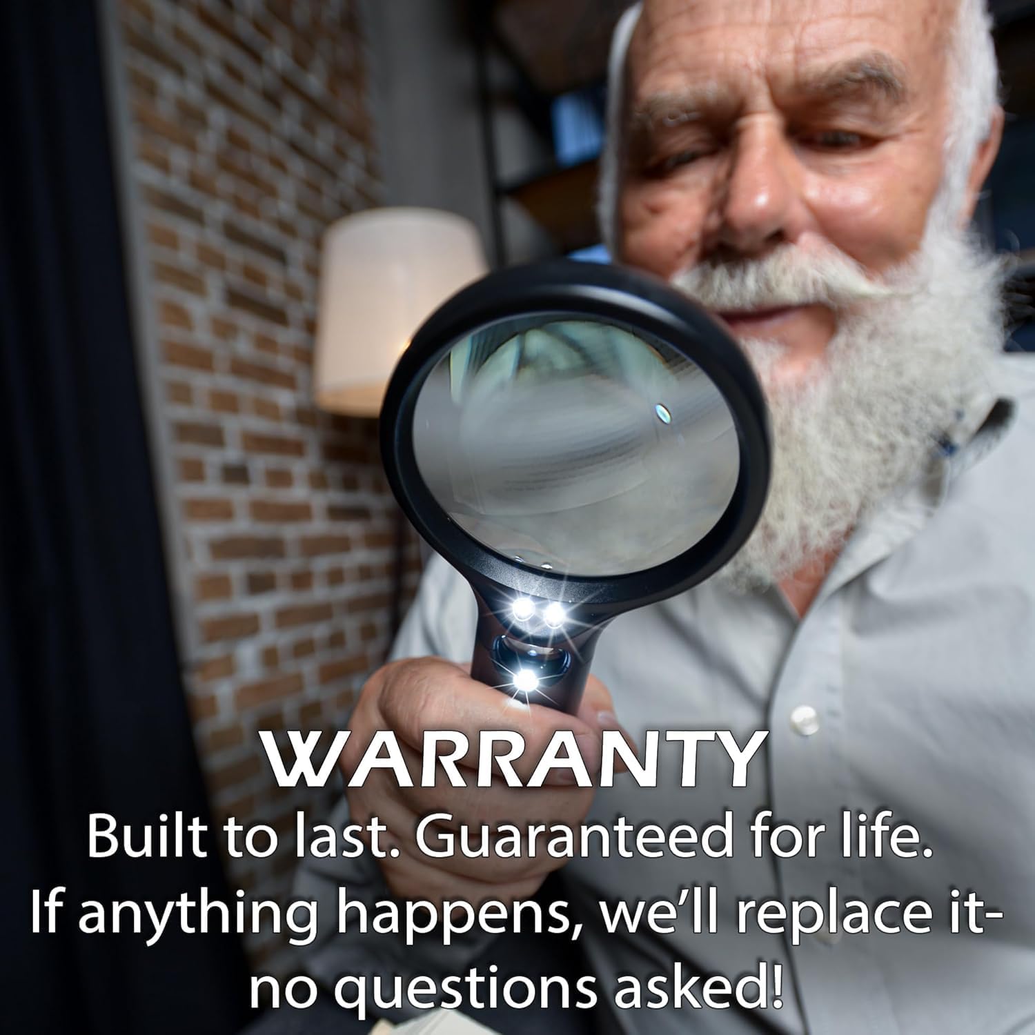Review: The magnification is great but the compartment for the battery is poorly made. I tried to adjust it but the light still rarely comes on because of the poor battery connection. I purchased this item in 2019 and the problem occured within a year.
