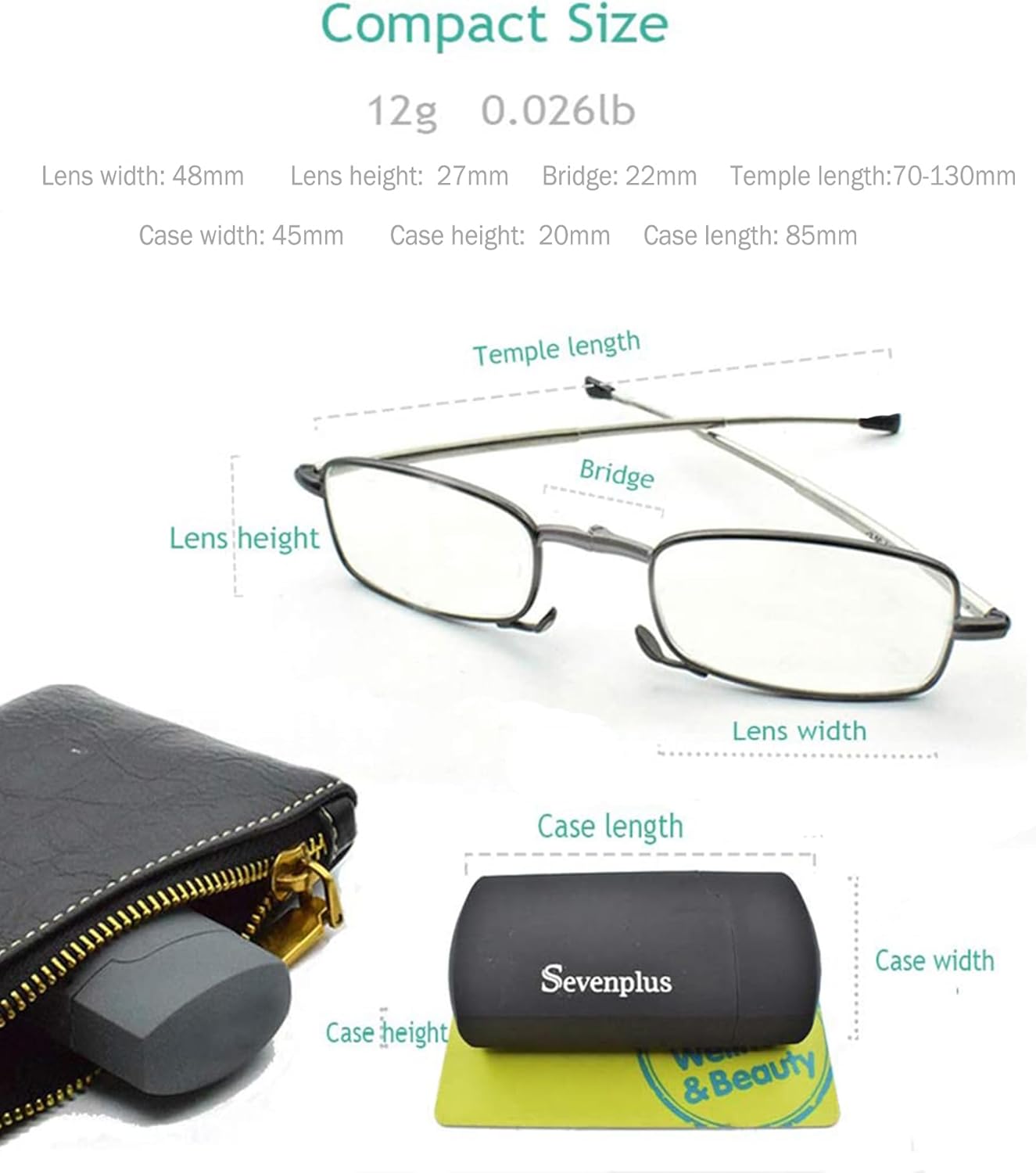 Review: I gave these a try because I wanted something small.  I play billiards.  I have no trouble seeing the balls on the table, but when it comes time to keep score, I need something to help me see small print on a tablet.  I had a full size pair in my bag, but the case took up SO much room.  These are perfectly sized.The lenses are clear and small text is sharp.  The blue light blocking is an added bonus.Now, the downsides… there is no bend at the end of the arm, and no pads on the bridge, so these fall RIGHT off if you’re moving around at all.  If you need something for when you’re moving around, this isn’t it.  That said, if you need something to help you see for a minute or two at a time, or while you’re sitting still, these have great lenses and a portability that is unmatched.