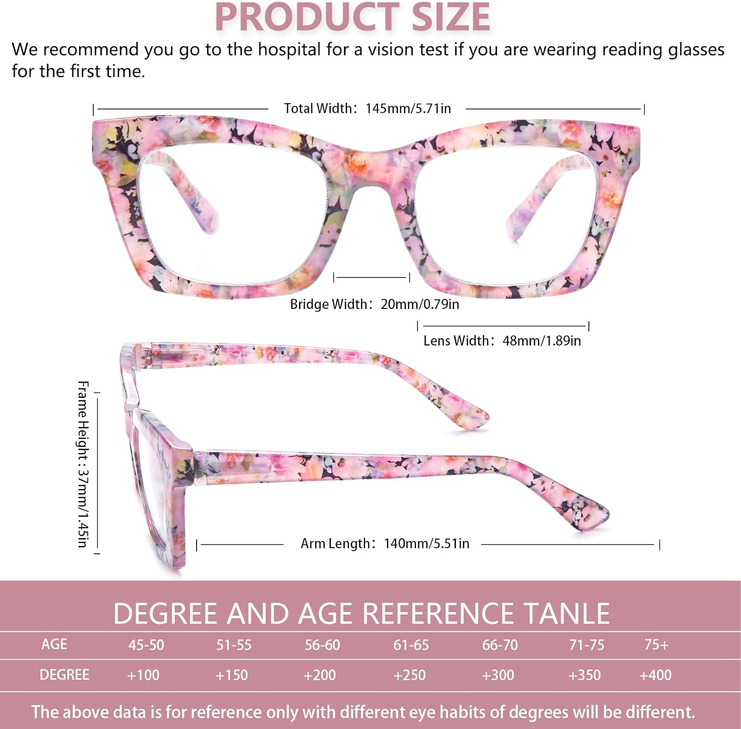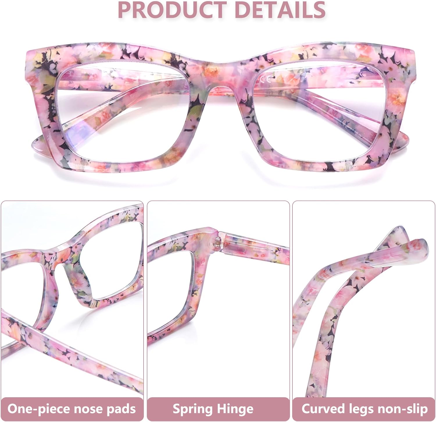 Review: Perfect Blend of Style and Function!These reading glasses are absolutely perfect! The quality is great — they’re sturdy, lightweight, and super comfortable to wear for long periods. The magnification is clear and consistent across all pairs, which makes reading and working on my tablet so much easier.I love that each pair has its own personality — the bright, colorful designs make it fun to switch things up every day. The matching cases are a thoughtful touch and help keep everything neat and protected in my purse.If you want stylish, reliable reading glasses at an amazing value, this set is a must-have!