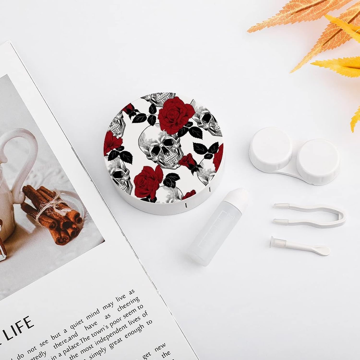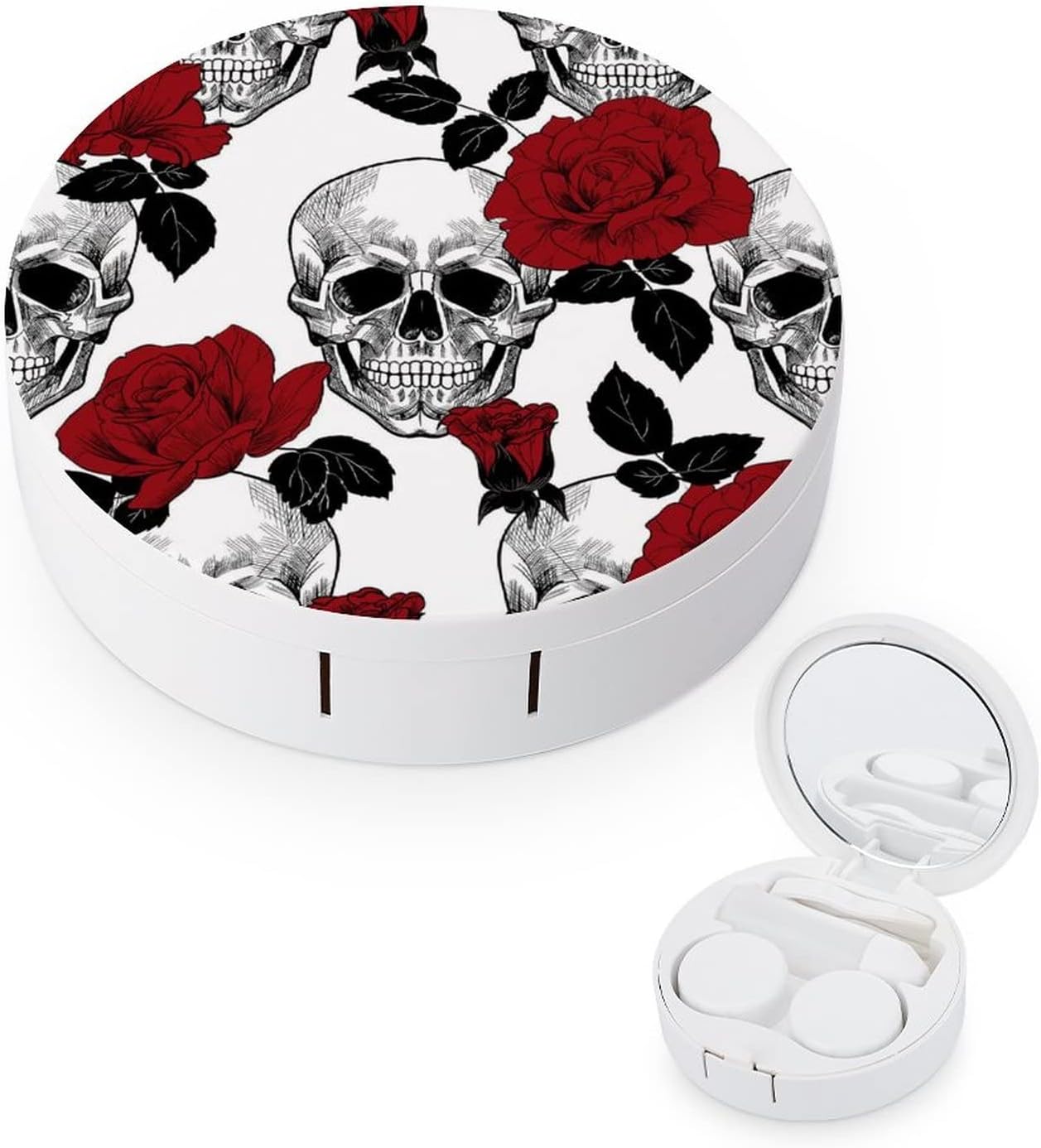 , Health & Household > Vision > Contact Lens Care > Cases, #Skull #Roses #Contact #Lens #Case #Colored #Contact #Lens #Box #Holder #Container #with..,