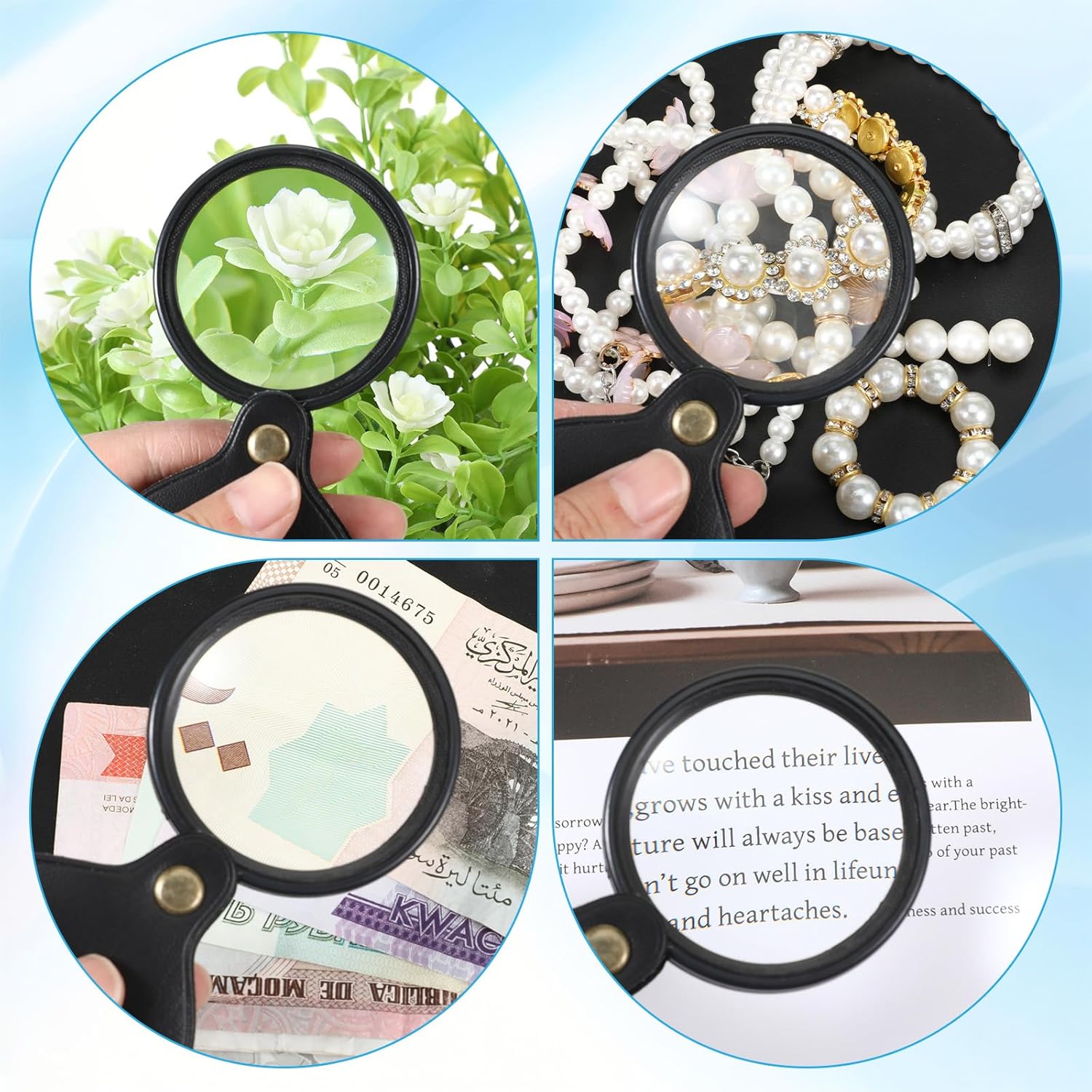 【Foldable Design】Equipped with a 360-degree rotating lens, this portable magnifier folds neatly into its protective ABS case. The padded case protects the glass lens from scratches and damage, while the compact size makes it easy to store in a pocket, purse, or bag for easy access…, 4,