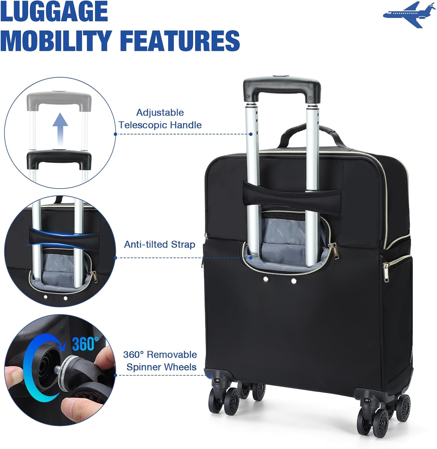 Airplane Friendly: Our rolling briefcase for women measures 16.5x7.9x15.7 inch, making it the perfect size for carry-on luggage, easily fits under the seats of most airlines (remove the wheels if needed). The 180° large opening can help quickly go through security checks.The weight of the product is 2730 grams.