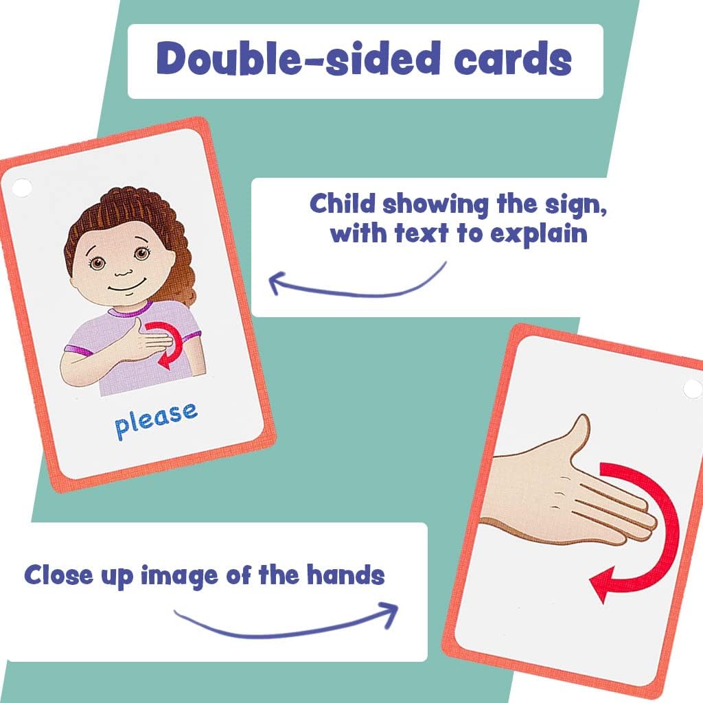 Review: When I received the cards, I was so excited that it came with a ring binder to keep all the cards intact. It is super convenient to hook onto the belt loop. A few of the cards are a little hard to demonstrate the signs.