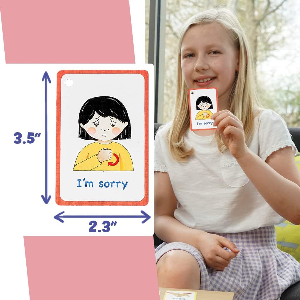 Review: Easy to carry in your purse. And the color images are great for the kids. My children loved it and mimicked the images. I buy this for that reason my husband/their dad is losing his hearing, and we’re learning ASL.