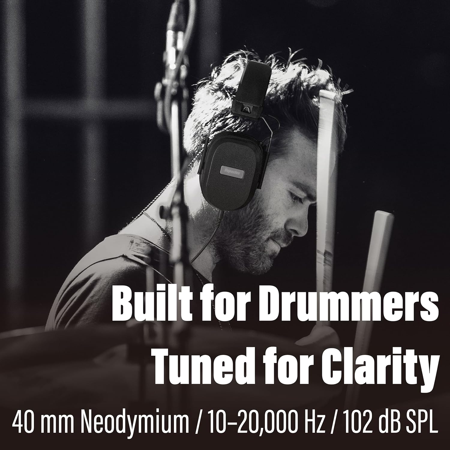 Review: If the Vic Firth isolation headphones make your brain pop out of your head (slight exaggeration) then these are the headphones for you. Better fit, same isolation, equivalent sound quality, its not audiophile but clean reference sound.I don’t leave a lot of feedback on items I purchase on Amazon , but these are worth purchasing if you cant utilize VF headphones. Drums are awesome , save your ears says this 62 year old hard hitting musician! Peace