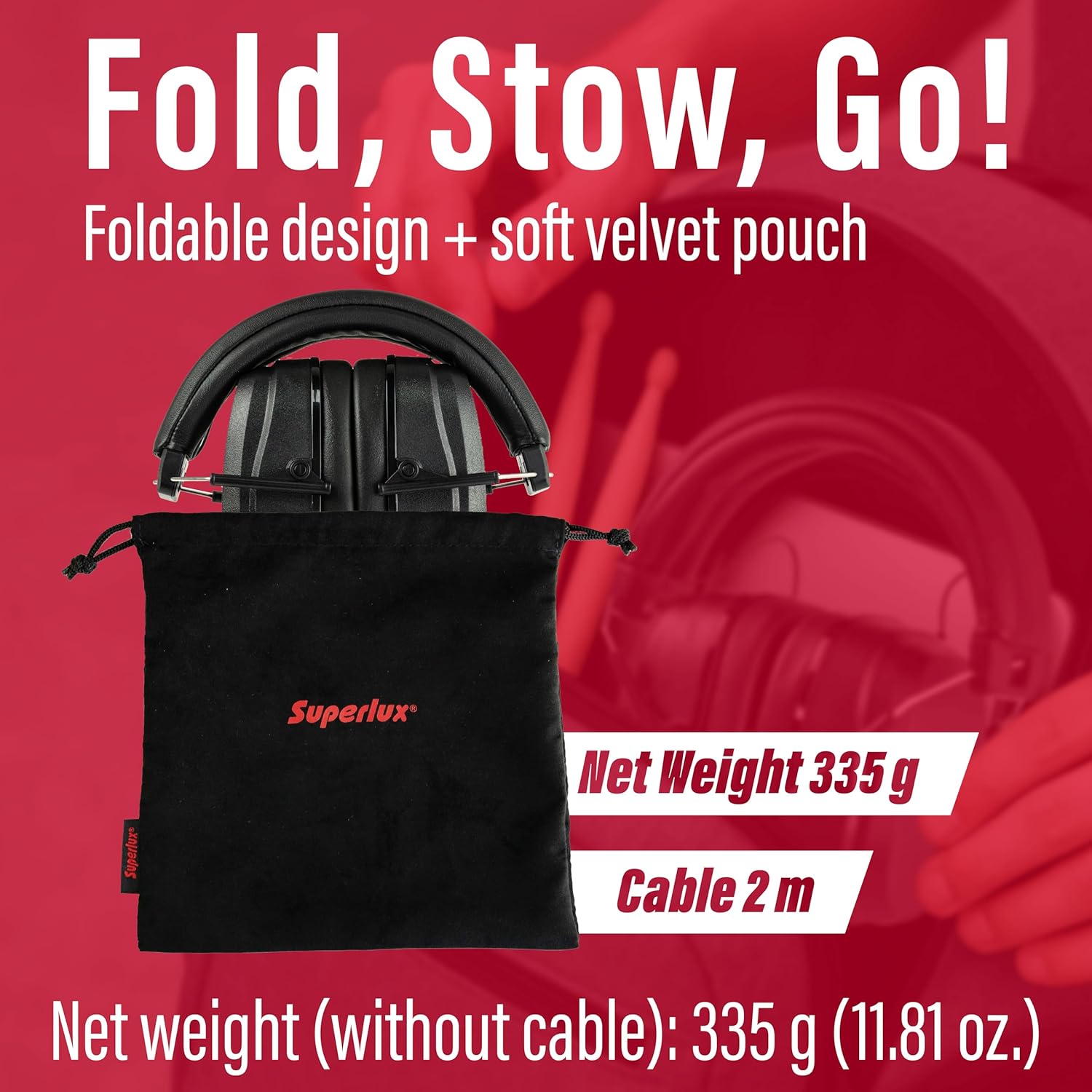 Superlux HD667 Professional Drummer Isolation Headphones Wired – 32 Ω Over Ear H…