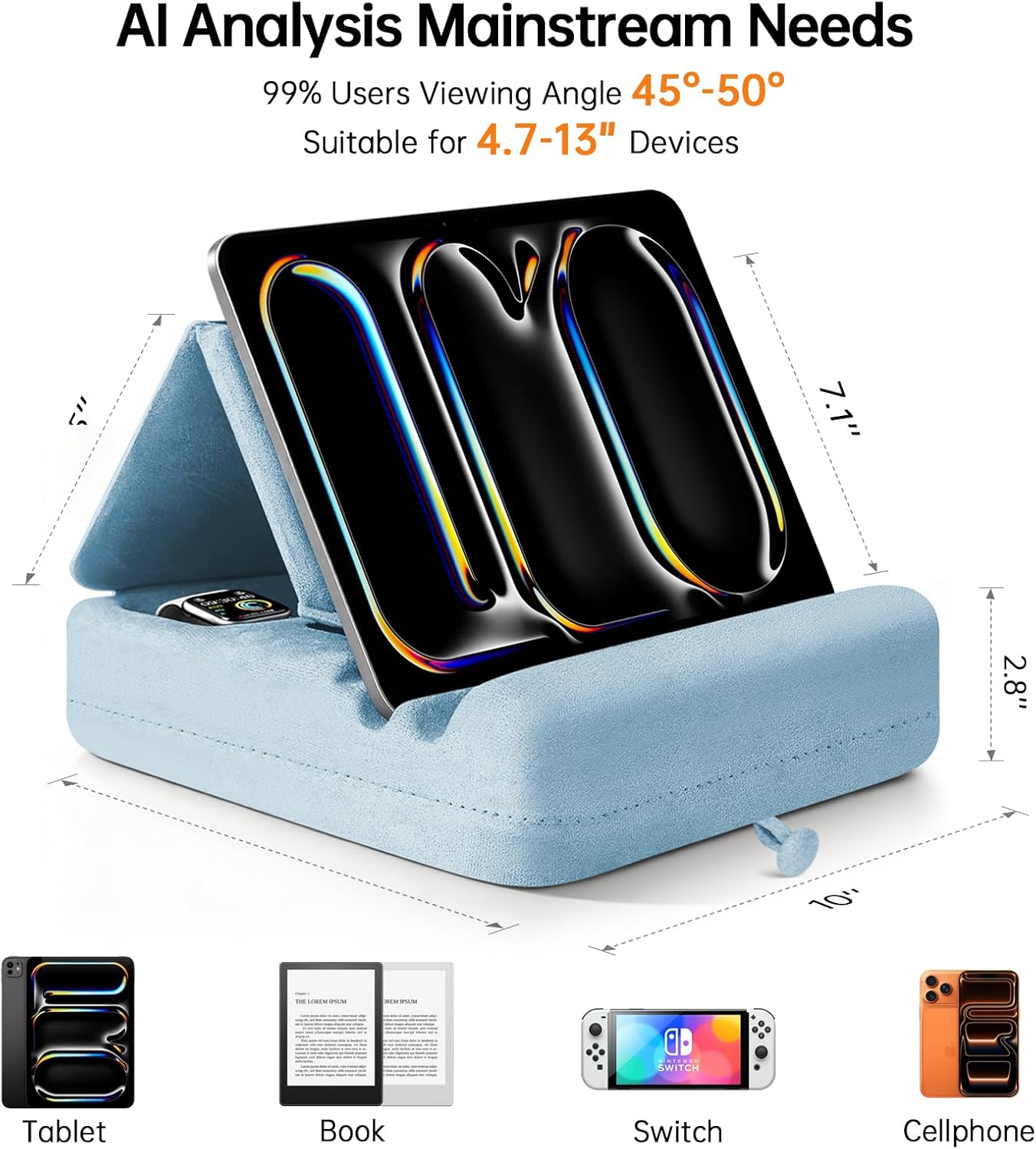 Review: This tablet pillow stand is great! it’s super soft, lightweight, and perfect for using my iPad on the couch or in bed without straining my hands or neck. The foldable design makes it easy to store, it holds my device securely at a comfortable viewing angle, and the material feels high-quality and cozy.