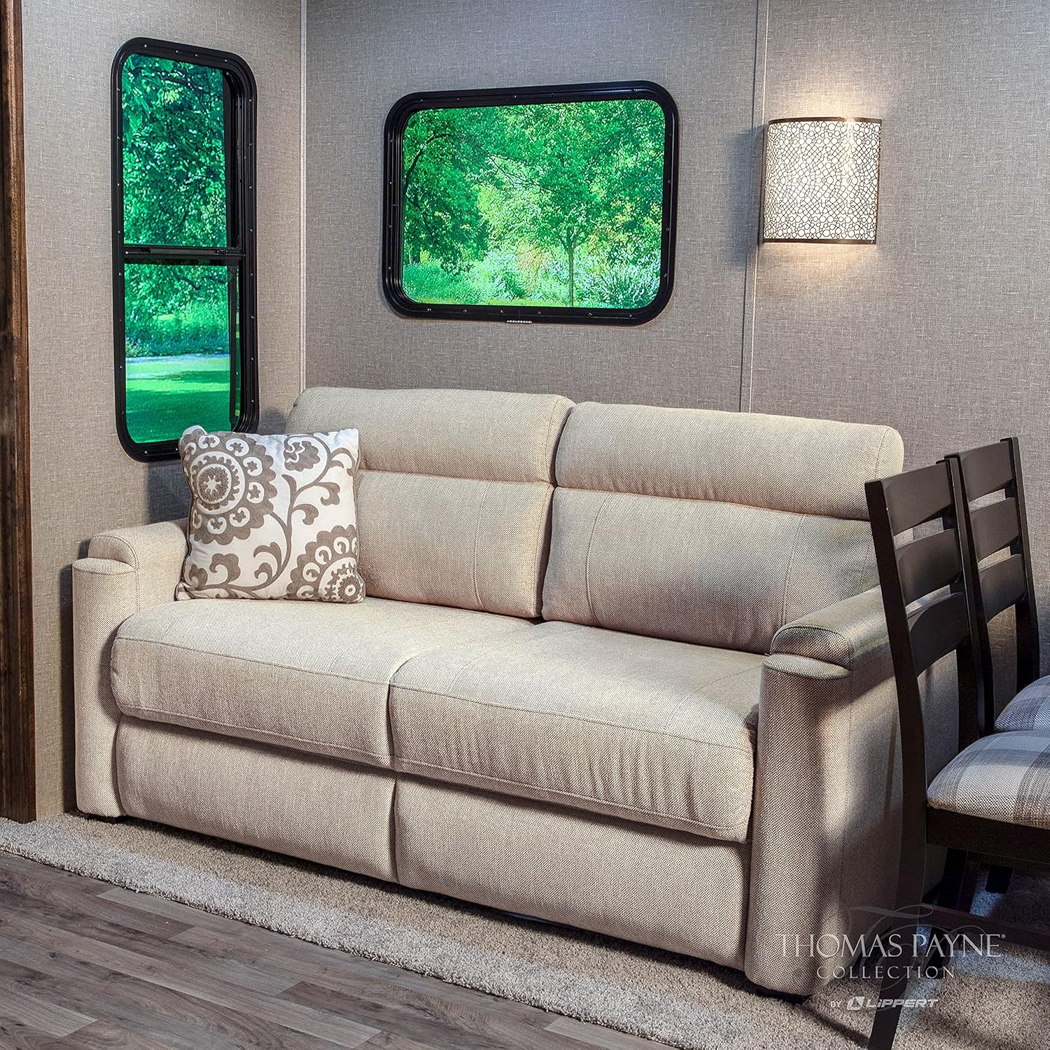 The Thomas Payne® Tri-Fold RV Sofa by Lippert is known for its versatile functionality and comfortable sleep surface. Traditional hide-a-bed mattresses on hard support bars are uncomfortable and disrupt sleep, and air mattress hide-a-beds can be easily damaged, not to mention they’re a hassle to set up and pack away.With our Tri-Fold Sofa, you can convert your RV’s couch into a very supportive high-density foam sleep surface in four simple steps. Now your family and guests will actually look forward to sleeping on your sofa! Designed specifically for travel trailers, 5th wheel, or motorhomes, this sofa comes with a removable back — helping you get through entryways and down the halls of your RV for an easy installation. The base of the sofa also opens up into a large storage space, so you can haul more without taking up room.And don’t forget, all of our PolyHyde vinyl fabrics can be easily cleaned with our new Thomas Payne Vinyl Fabric Cleaner, specifically formulated for safe use on your Thomas Payne furniture. Spray, wipe, and be on your way.Our Thomas Payne Furniture Collection comes complete with the style and color options you need to update or replace the furniture in your RV, the way you want. Our easy-to-clean PolyHyde® vinyl fabric comes in three color options (Milbrae, Altoona, and Grummond), and this material is backed by an industry-first 5-year Hydrolysis Warranty. Norlina is our woven-fabric color option and is a durable solution for RV owners traveling with pets or little ones.Whether you’re on the road or on the water, Lippert supplies a broad array of premium RV, towing, and marine products designed to enhance all of your recreational pursuits. Our team is committed to always thinking about your next journey — pushing the possibilities of our products and services, all to better your time spent outdoors, whenever, wherever, for years to come.