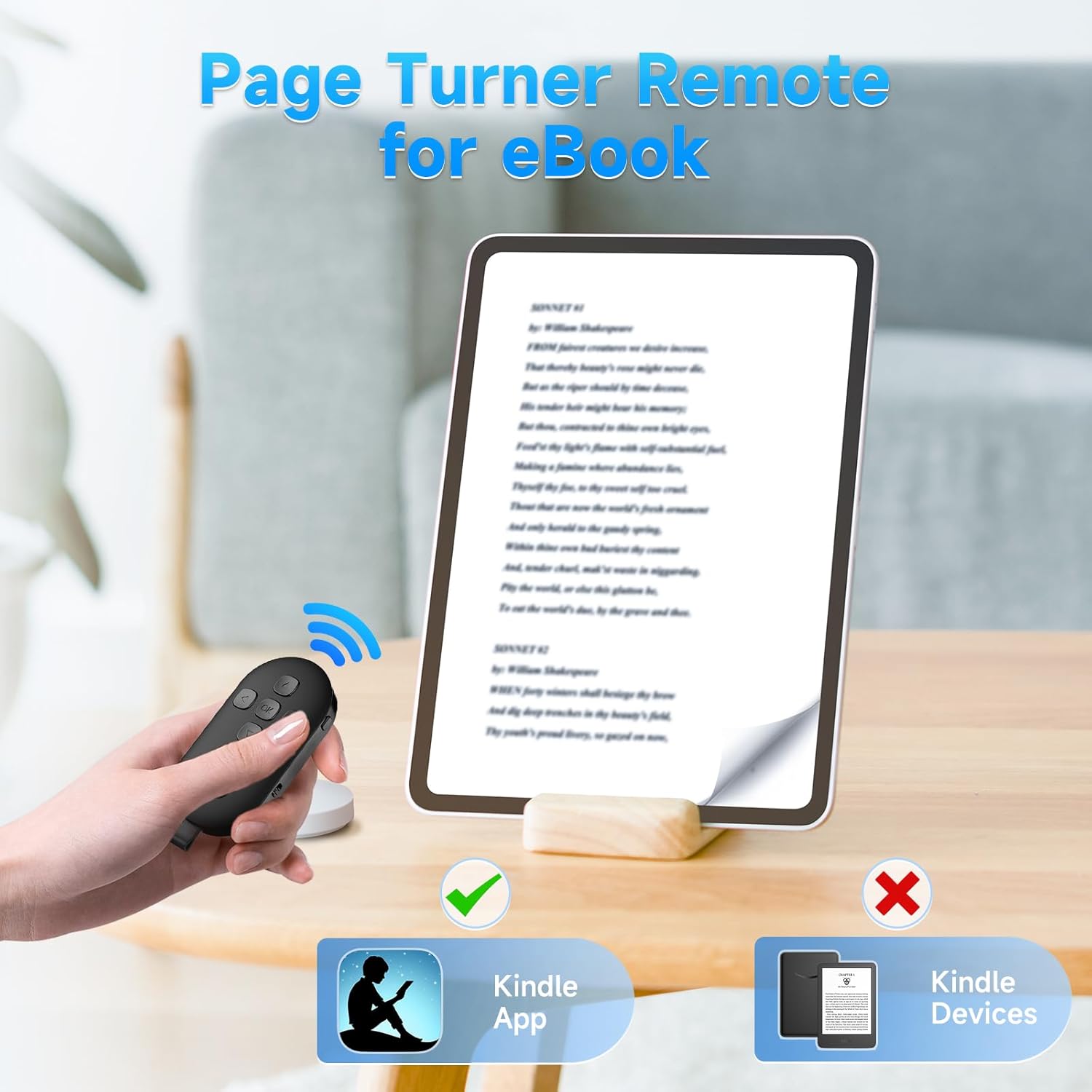 Review: I read via tablet and have a stand for it. touching the tablet made it wiggle so bought this. Works great but the click of the buttons is kind of loud. FYI if you have a clicker trained dog they will want to know what they did good each click. LOL