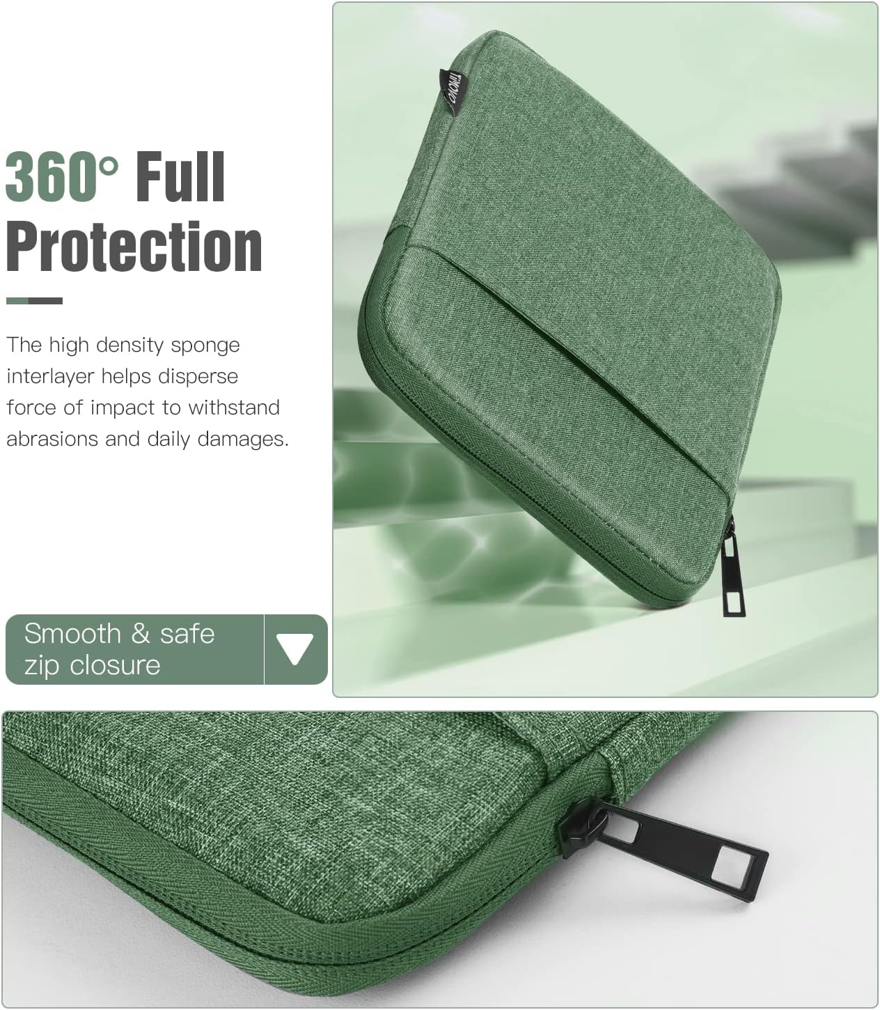 Review: LOVE LOVE LOVE this perfectly gorgeous protective pouch for my new Jade color Kindle Paperwhite Signature 2024 ed. I researched sleeves all over the internet and finally settled on this model. A grand slam! Quality construction, perfect size, padded protection, beautiful color, great zipper and front pocket. Stop your search for the best Paperwhite sleeve- no matter what color or design you pick, this sleeve will protect your baby in style!!!Ten stars for sure!