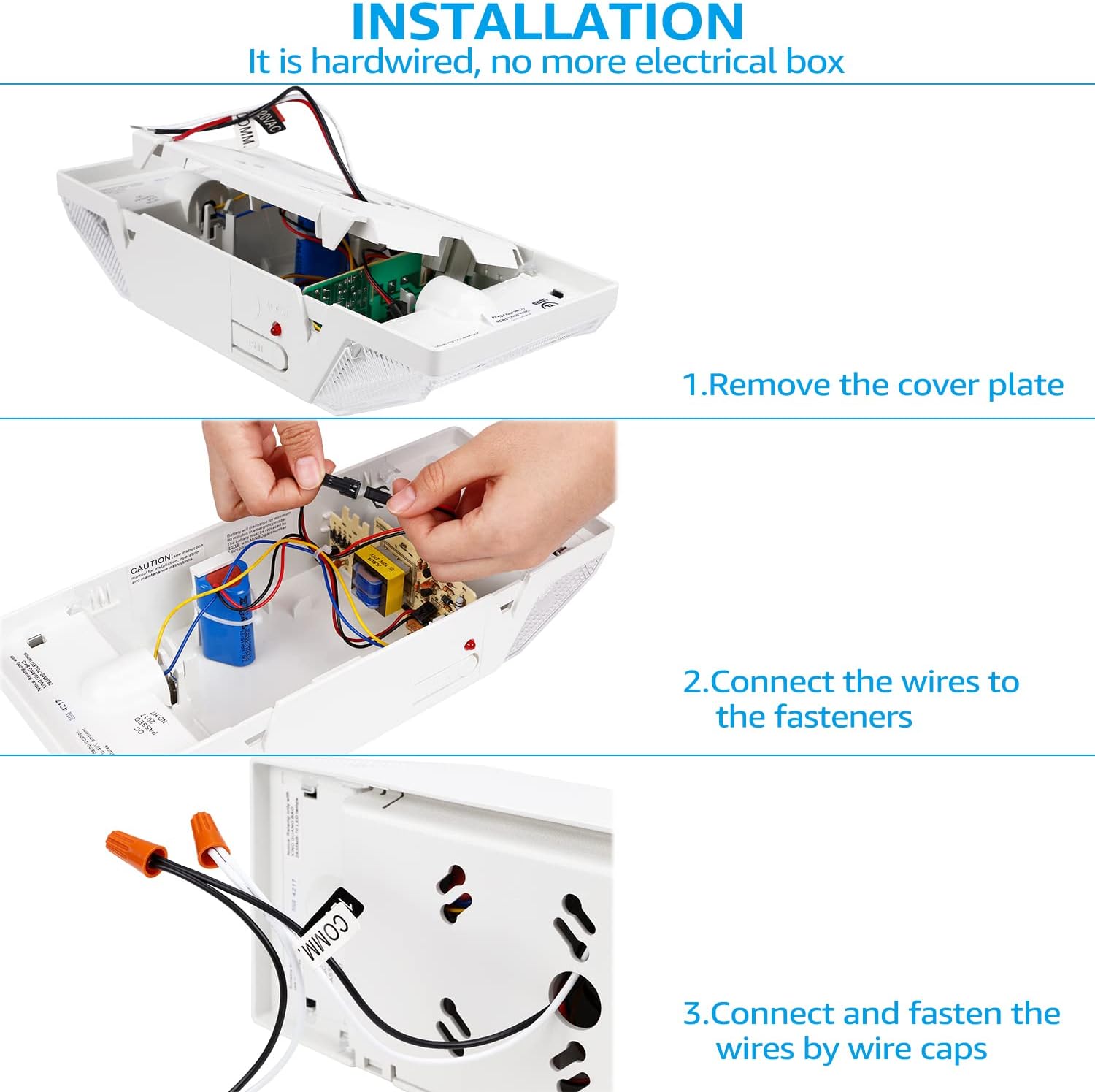 Review: These emergency lights are just what I was looking for.  They fit to the wall (ceiling) well and don’t stick out looking like a two eyed creature.  Put this on above our garage storm shelter, so when the power goes out, one can easily see to get in.  Please note: the plastic is brittle, mainly the lenses for the lights. Although this comes as two, I only got to install one.  The first light installation, was replaced due to the housing slipping off my ladder, and falling 4 feet to the floor.  It shattered into many pieces, almost like glass, so be careful.  The second fixture went in well, and works as it should.  Actually quite bright when tested in a dark garage.  Looks like the three backup batteries wouldn’t be too difficult to replace, when their life is up.