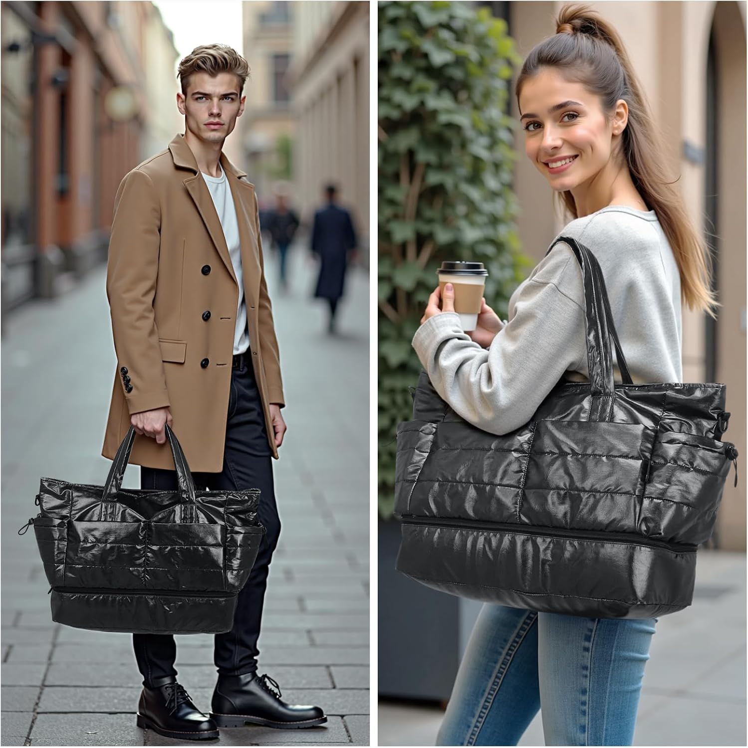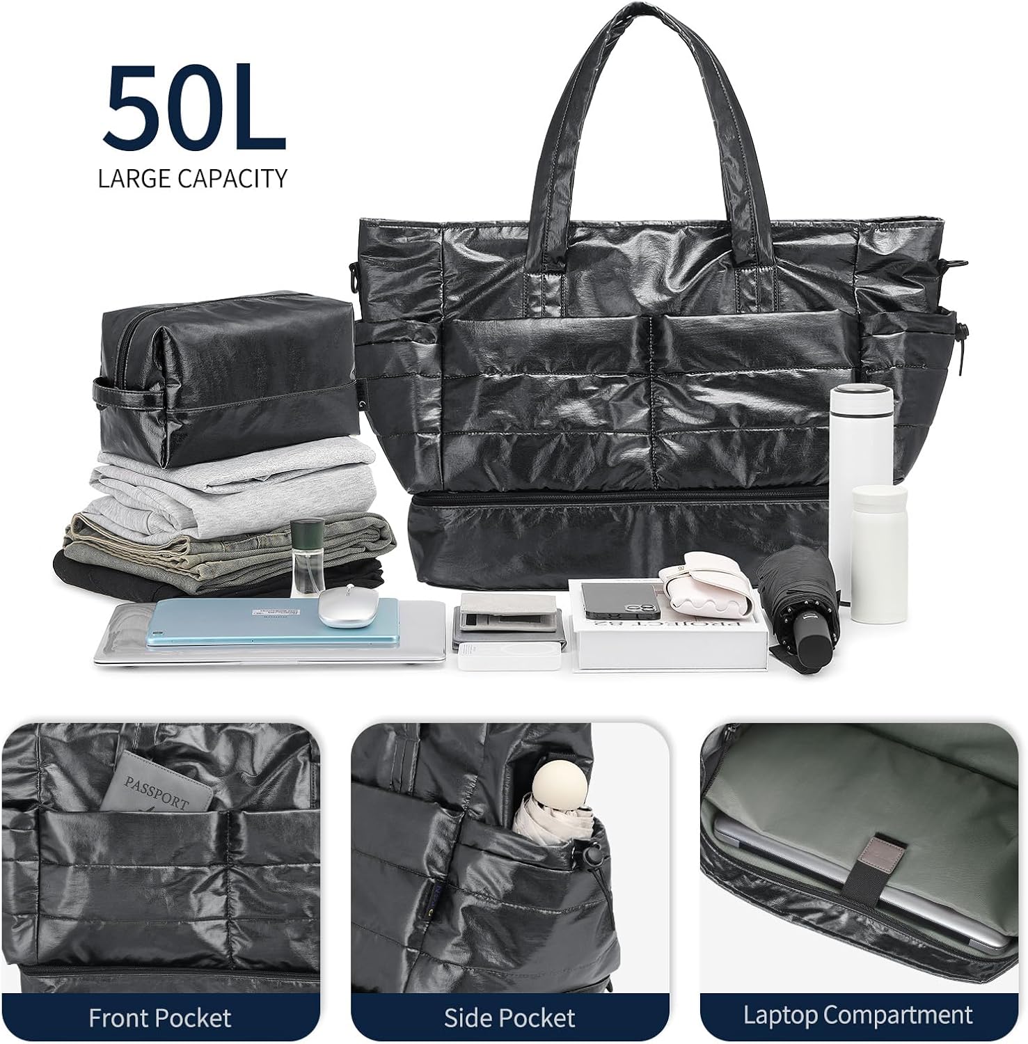 -Weekender Bag and Overnight Bag for Women-- This large duffel bag has a shoe compartment, which can even hold 3-5 days of daily necessities. Multiple pockets to keep your personal belongings organized: Spacious main compartment, and a pocket on the front of the travel duffel bag for easy access to electronics. Elegant and gorgeous appearance. Our folding travel bag meets the greatest needs.
