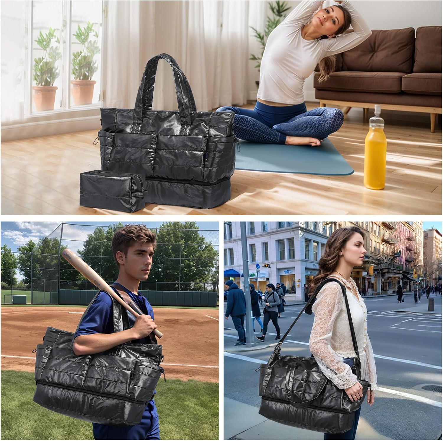 -Wet Dry Separation Gym Bag and Travel Duffel Bag-- Our travel duffel bag can help you separate wet and dry items, if you have wet clothes or towels, you can put them in this women's gym bag. Our women's gym bag is a perfect reliable companion for indoor and outdoor sports. It is perfect for exercise, yoga, tennis, basketball, swimming, camping and many outdoor activities.