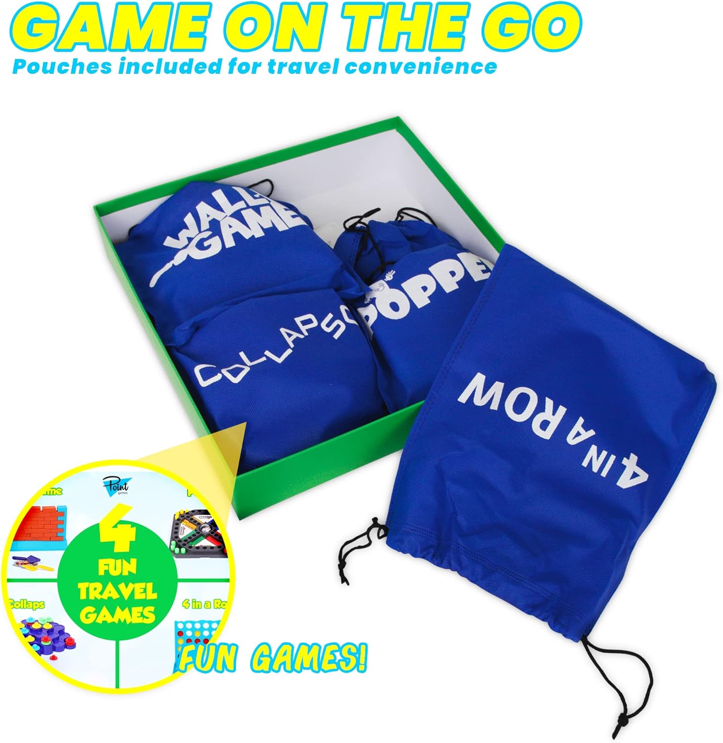 WHATS INCLUDED: Four fun travel games for ages 5 and up includes; the wall game, popper, collapso, and four in a row. Makes a great gift for kids, surprise children on their birthday, holidays, or any other commendable event.