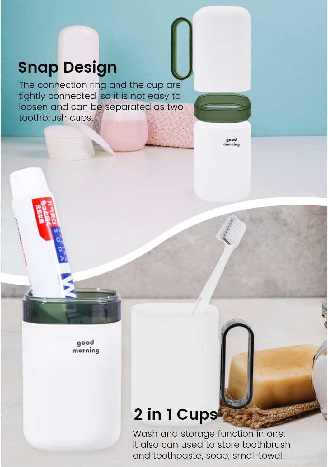 【Two-section Design 】 Wash and storage function in one. It travel toothbrush holder connected by an attachment ring and can be separated as two toothbrush cups.The travel toothbrush holder can not only be used for washing up, but also can used to store toothbrush and toothpaste,soap,small towel,cosmetics,and other small items in bulk.