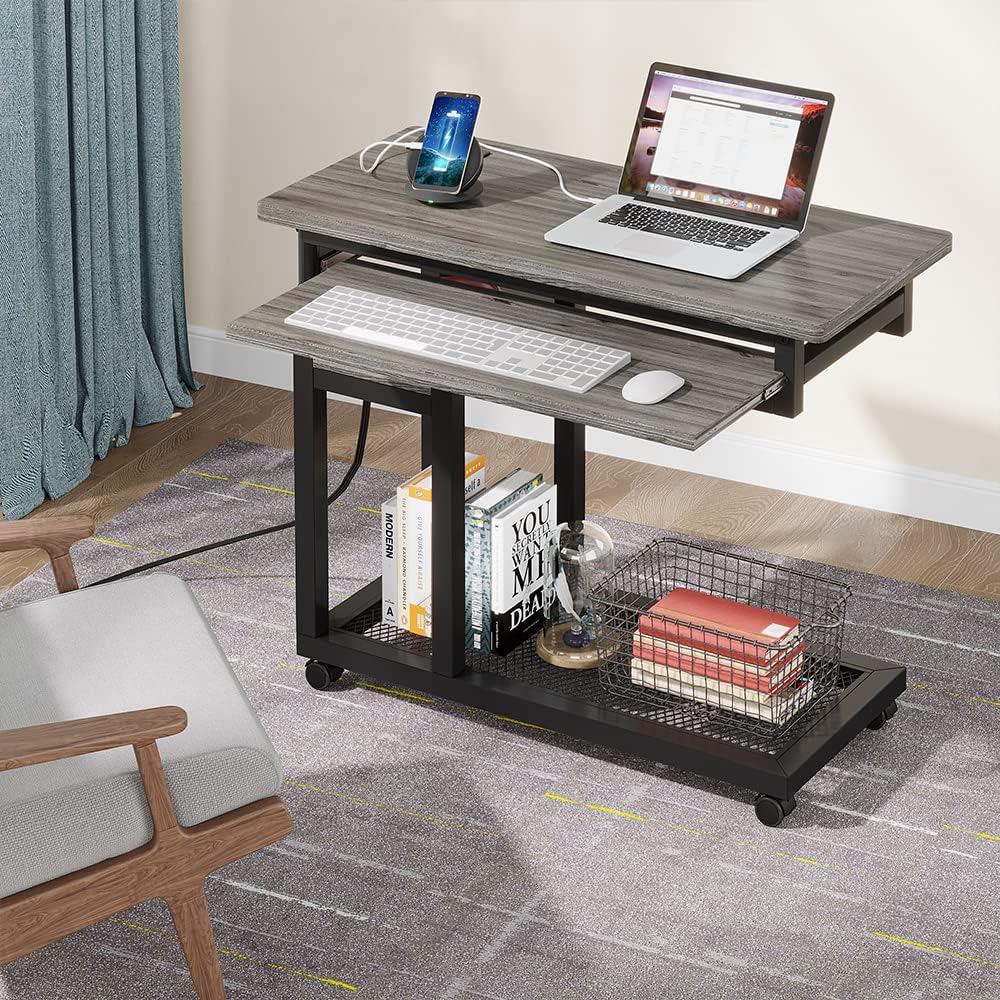 , Home & Kitchen > Furniture > Home Office Furniture > Home Office Desks, #Tribesigns #Small #Portable #Desk #Power #Outlet #Height #Adjustable #Sofa #Couch #B..,