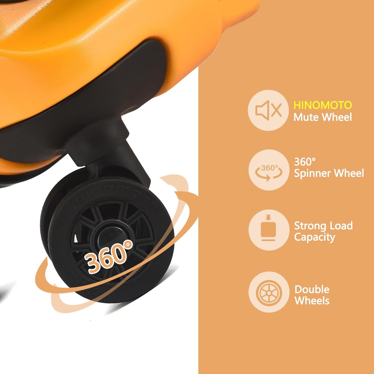 HINOMOTO Mute Wheel& Smooth Trolley: Made from a lightweight ABS+PC hardshell material, this suitcase is easy to carry and built to last. luggage adapts to various ground and moves very silently and smoothly in 360° with excellent maneuverability. HINOMOTO Mute Wheel and smooth trolley provide effortless maneuverability, making it easy to navigate through crowded airports or busy streets The ergonomic 4-step telescoping Trolley can be adjusted to any height you want.