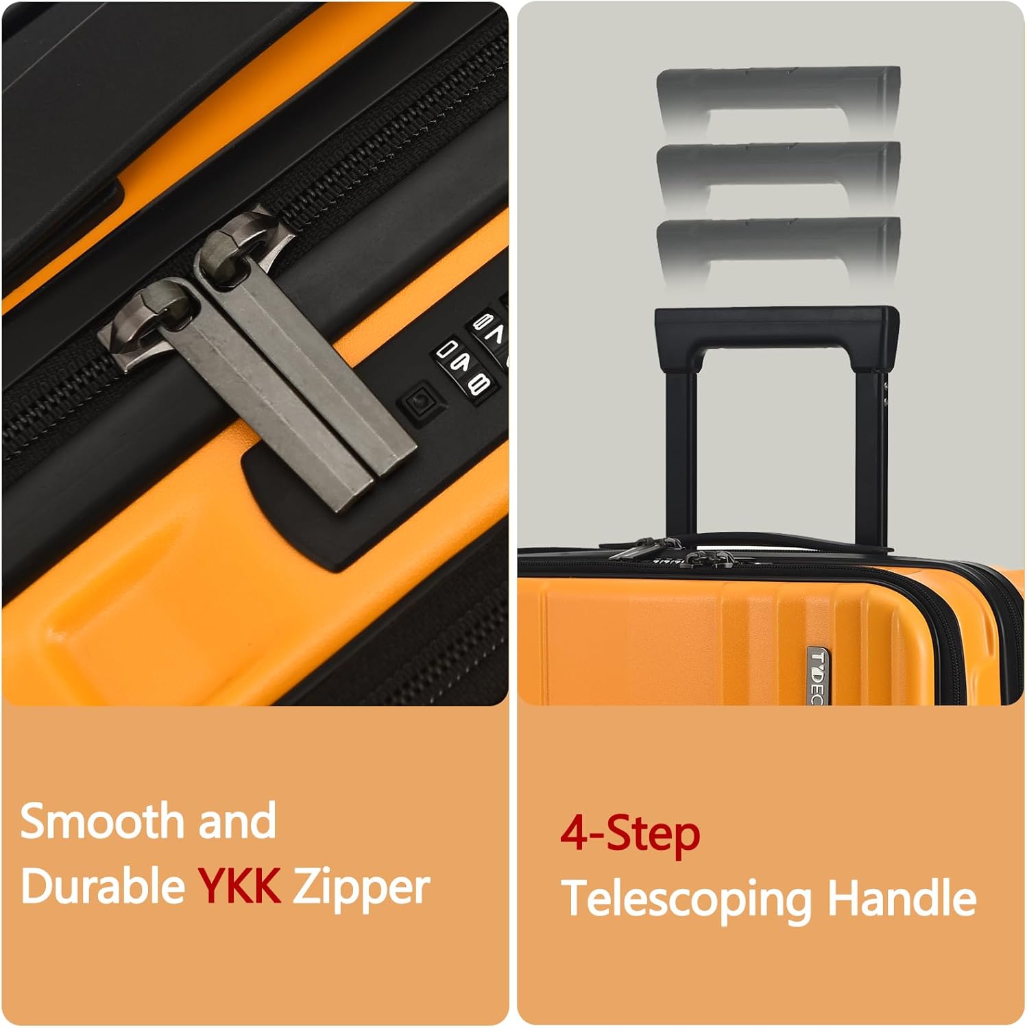 Dual Control TSA Lock & YKK Zipper: Top mounted double control TSA Lock with one 3 digit combination. One Lock controls the front compartment and the other controls the main compartment. Tips: No keys required, Key is only owned by custom officials.The factory default code for new luggage is 0-0-0, please refer to the manual or details page for the reset password steps. Smooth and sturdy YKK zipper reverse coil prevents burst zipper, zippers are not easy to be pierced by sharp tools.