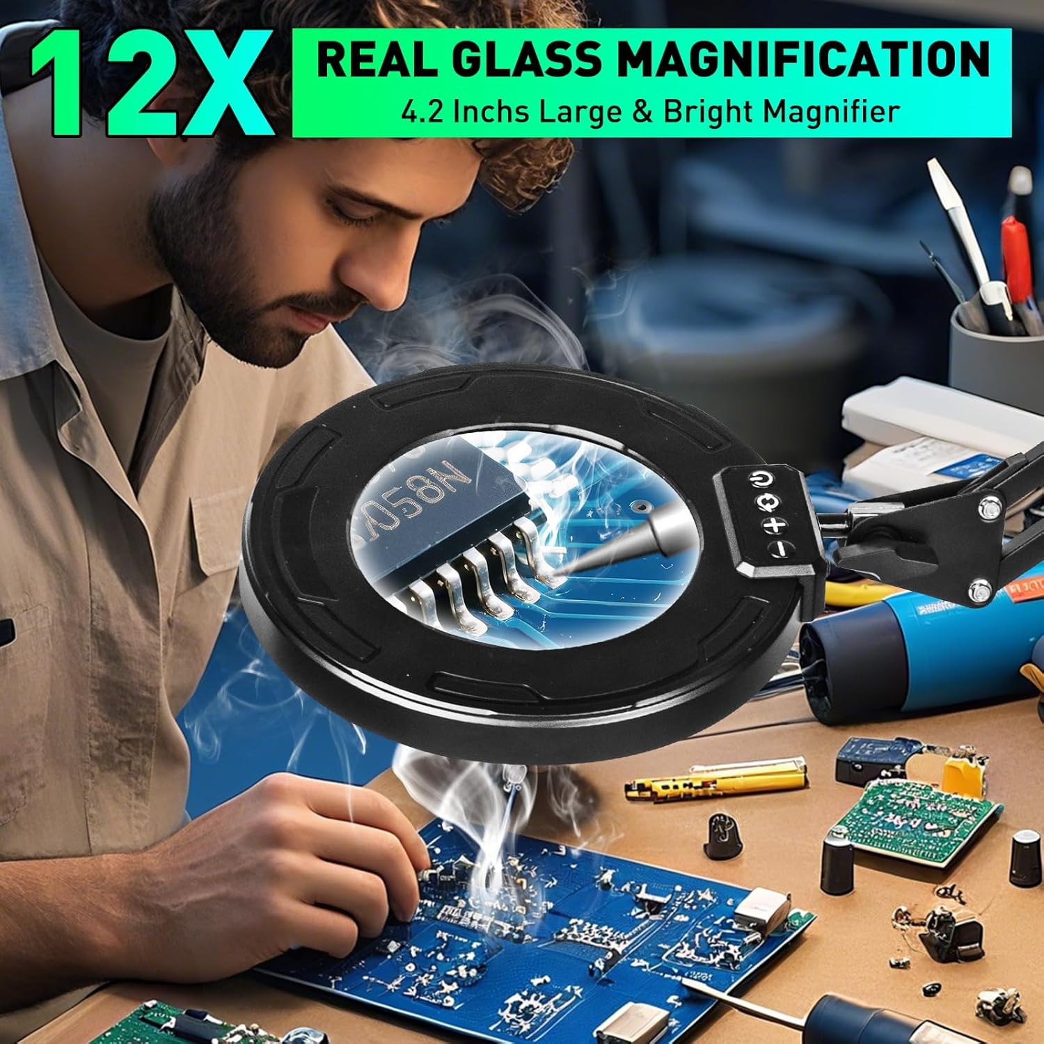 , Arts, Crafts & Sewing > Model & Hobby Building > Accessories, Hardware & Tools > Magnifying Tools, #Ultra #Long #3Section #Arm #12X #Magnifying #Glass #Light #Stand #LED #Lighted,