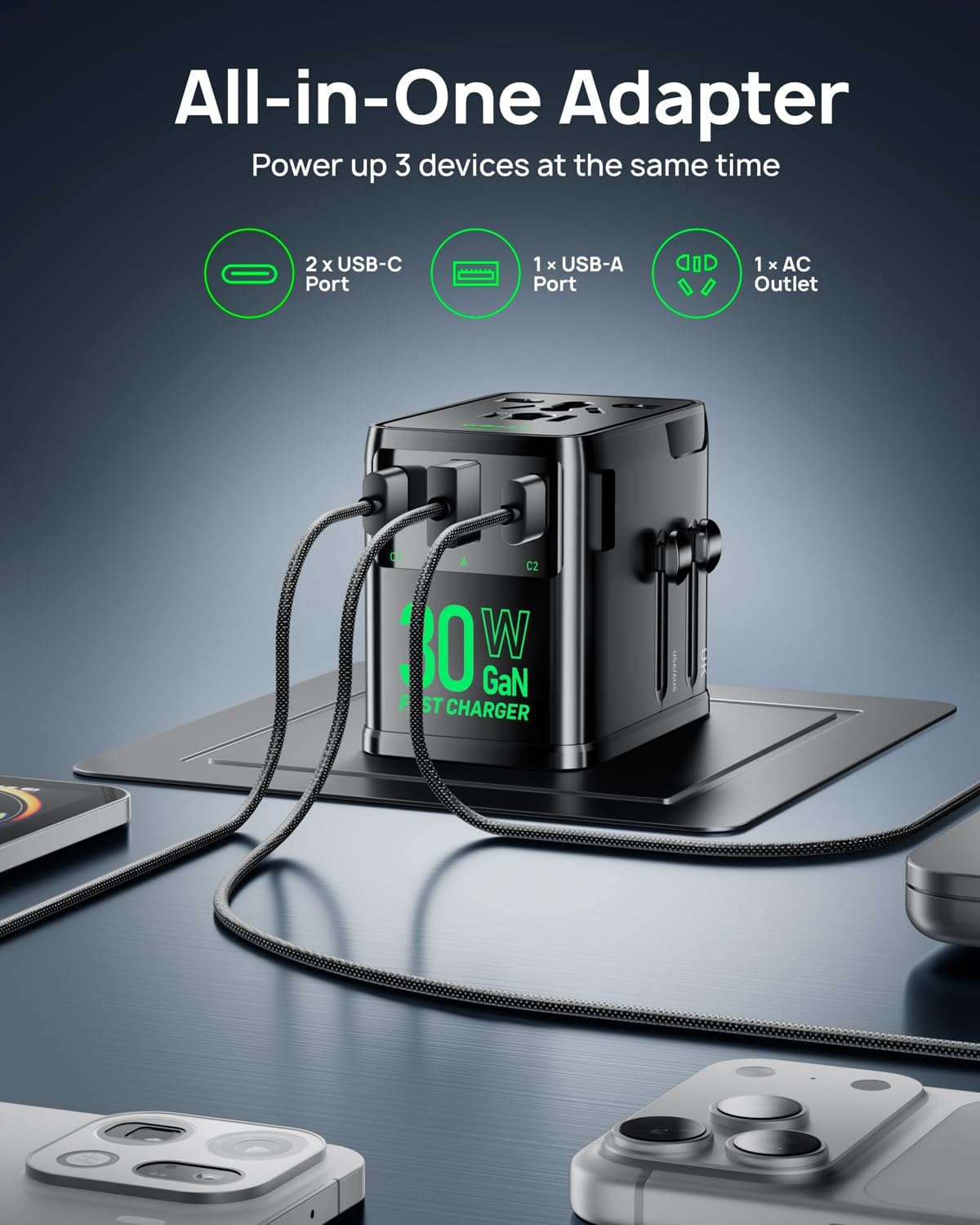 Universal Travel Adapter, 30W GaN Fast Charging Internationa…