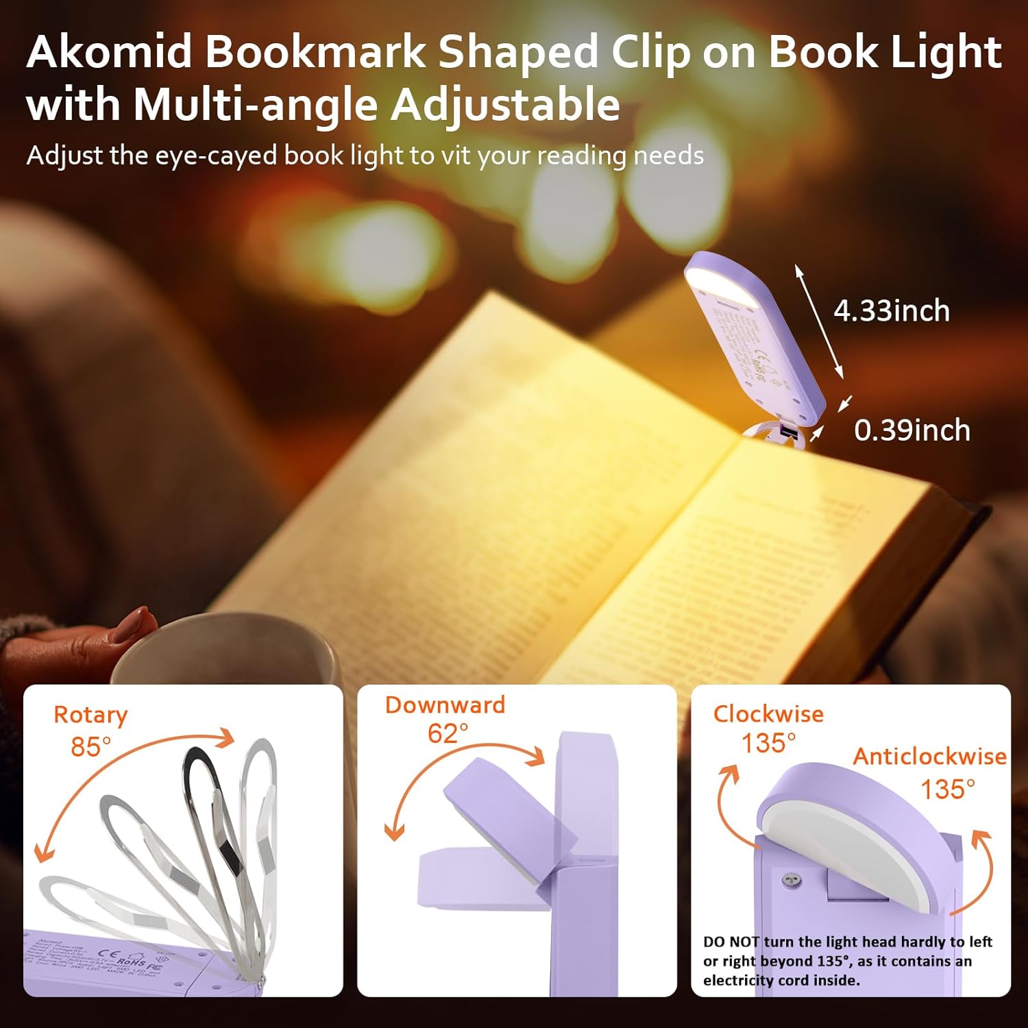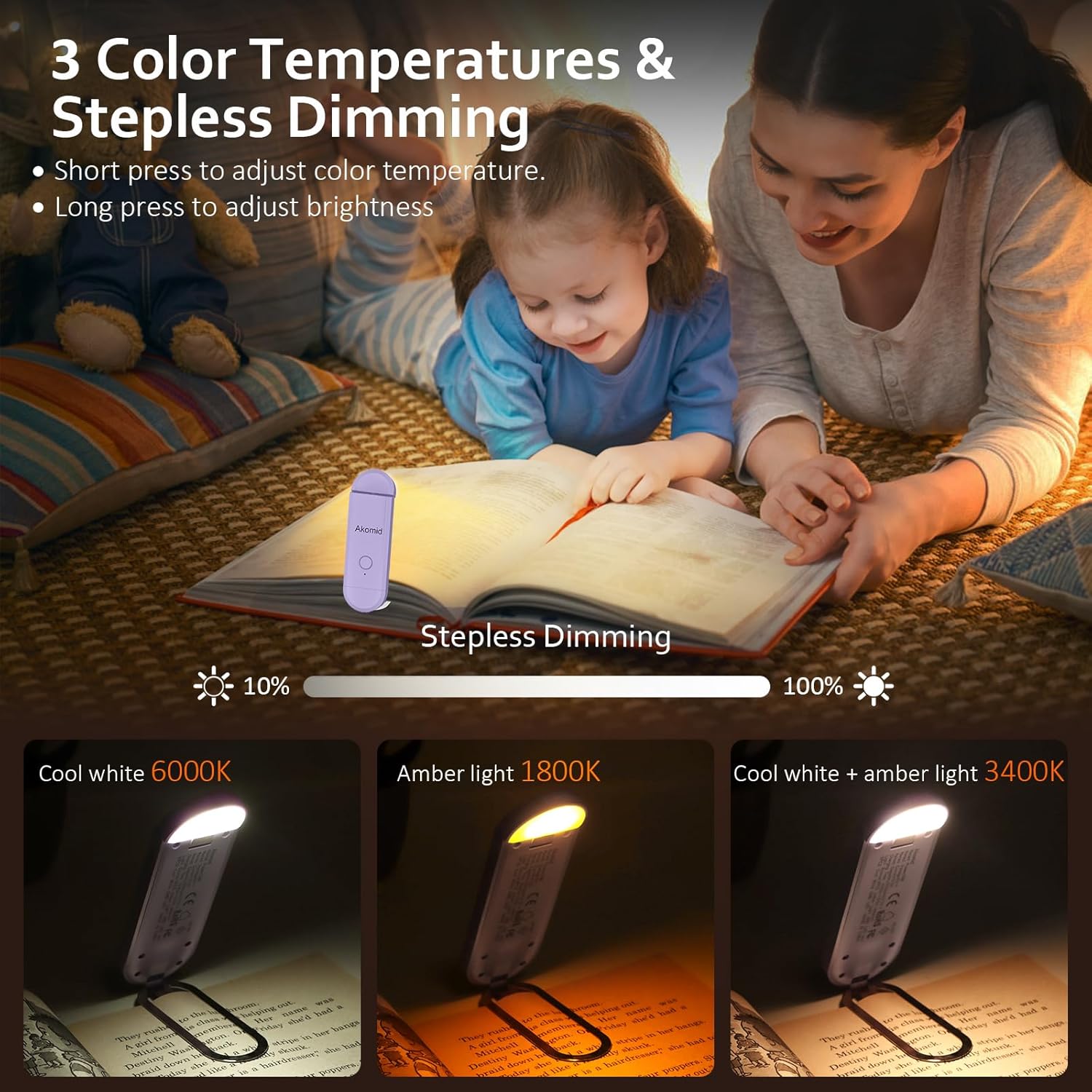 Review: I ordered this book light because the one I currently have is huge and heavy which is not compatible when reading smaller paperback books.This booklight is lightweight and slides easily onto the back pages or back cover of the book. It has multiple settings, white light, amber light, mixed white/amber, and bright white. The lighted portion can also be bent and swivels for optimal coverage across both pages.My only critique is that the light cannot sit flush against the pages, it doesn’t bend to a 90-degree angle but sits at a tilt. Because of this you can’t actually push the light all the way onto the pages and have to kind of balance it so it doesn’t fall off. If it sat flush, you could turn pages easily, due to the tilt, you have to either pull it off to turn pages or not push it all the way on.I’ll include photos in an edited version for clarity.