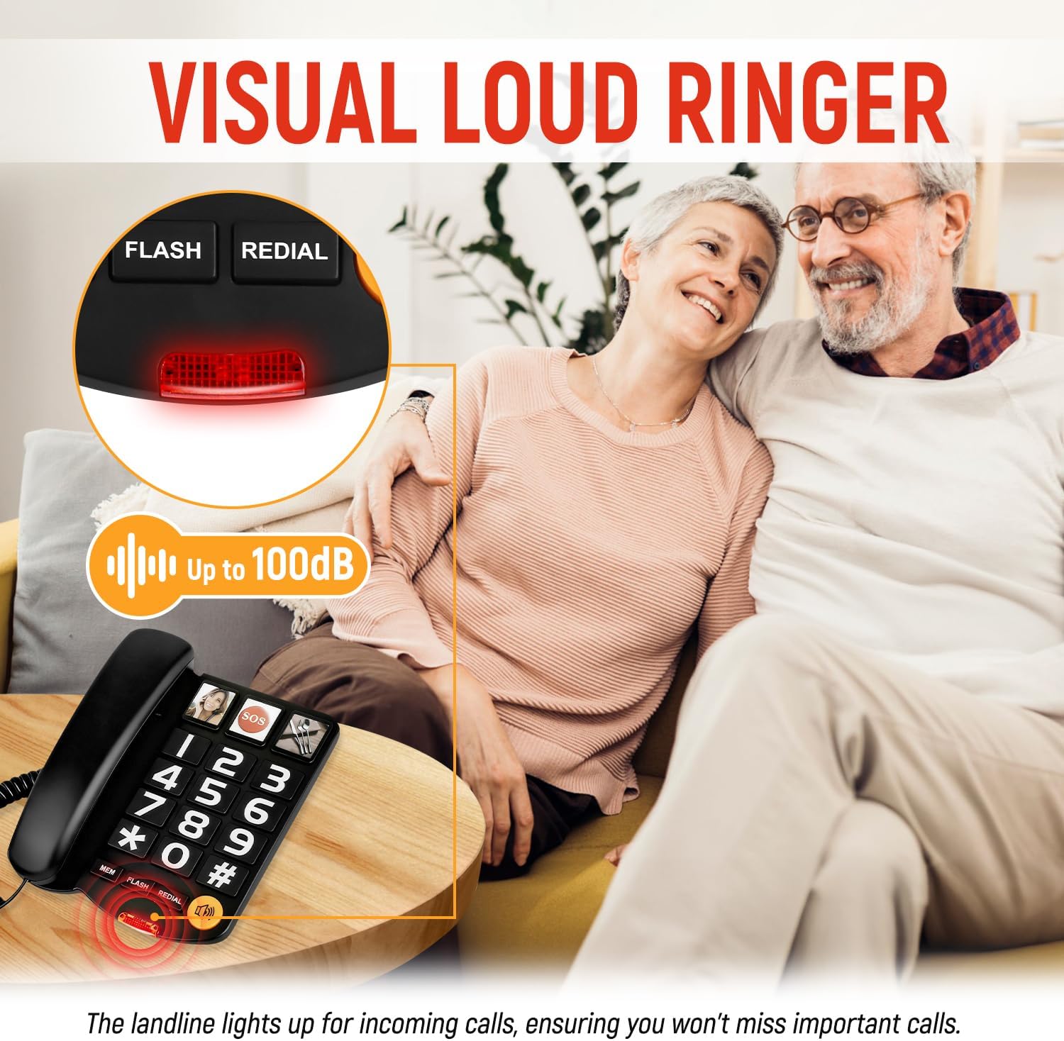 [3 One-Touch Large Buttons] This senior phone features 2 large photo buttons & 1 SOS emergency button that can store frequently dialed numbers. You can also replace the pictures on photo buttons. Additionally, the phone includes 10 groups of two-button memory, making it simple for seniors or those with memory loss to access important contacts with ease. Please note: Do not unplug the phone line to avoid losing stored contact numbers