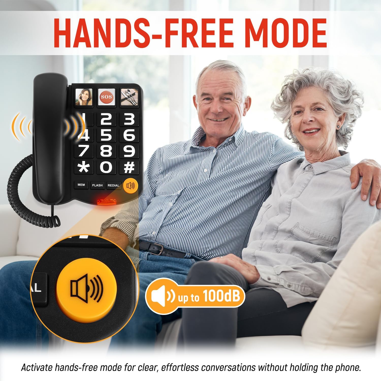 [3 One-Touch Large Buttons] This senior phone features 2 large photo buttons & 1 SOS emergency button that can store frequently dialed numbers. You can also replace the pictures on photo buttons. Additionally, the phone includes 10 groups of two-button memory, making it simple for seniors or those with memory loss to access important contacts with ease. Please note: Do not unplug the phone line to avoid losing stored contact numbers
