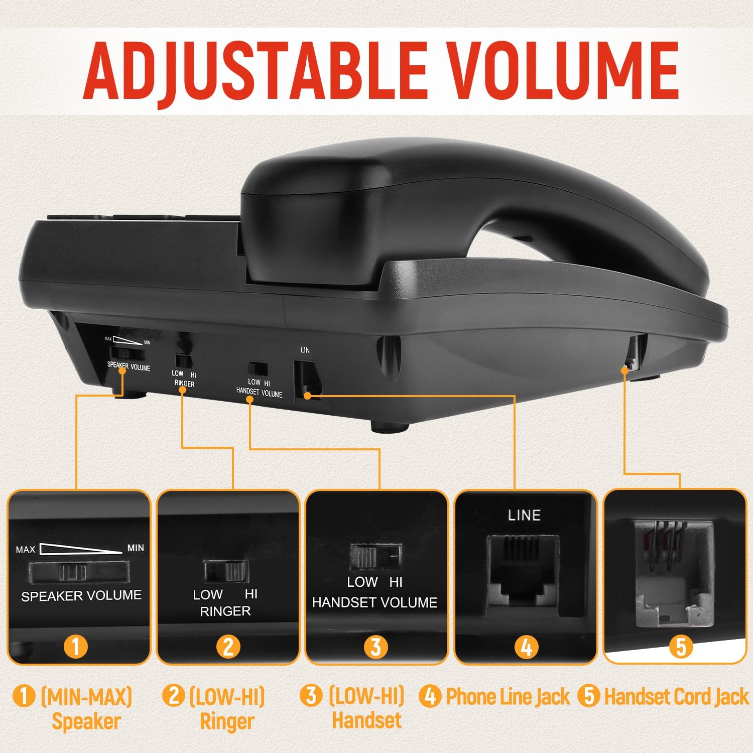 [Adjustable Volume] The ringer has 2 adjustable levels: LOW and HIGH, with a maximum volume of 100dB for easier call…, ,