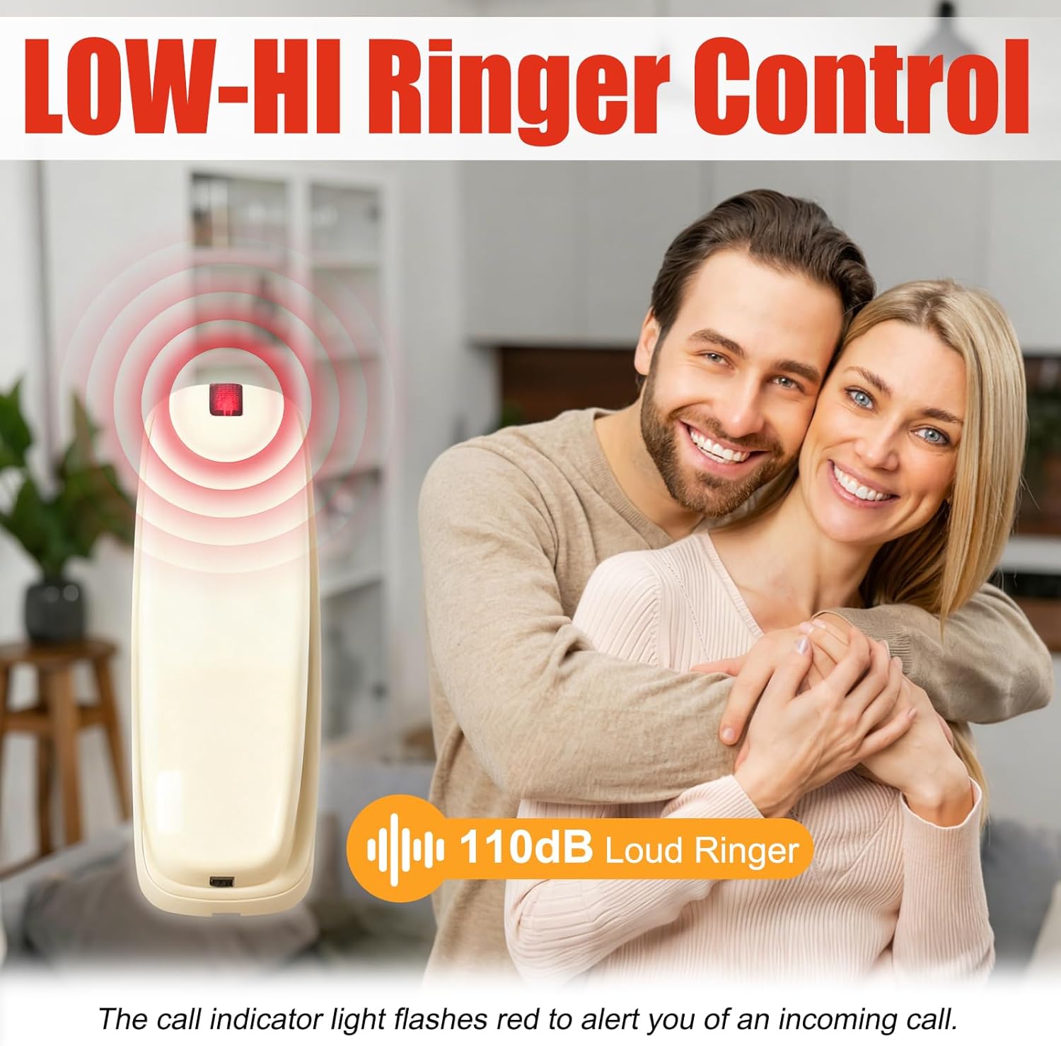 [Adjustable Volume] Switch Low-HI to adjust the ringer volume, up to 110dB. Features a convenient 2-level (LOW–HI) handset volume control for easy adjustment