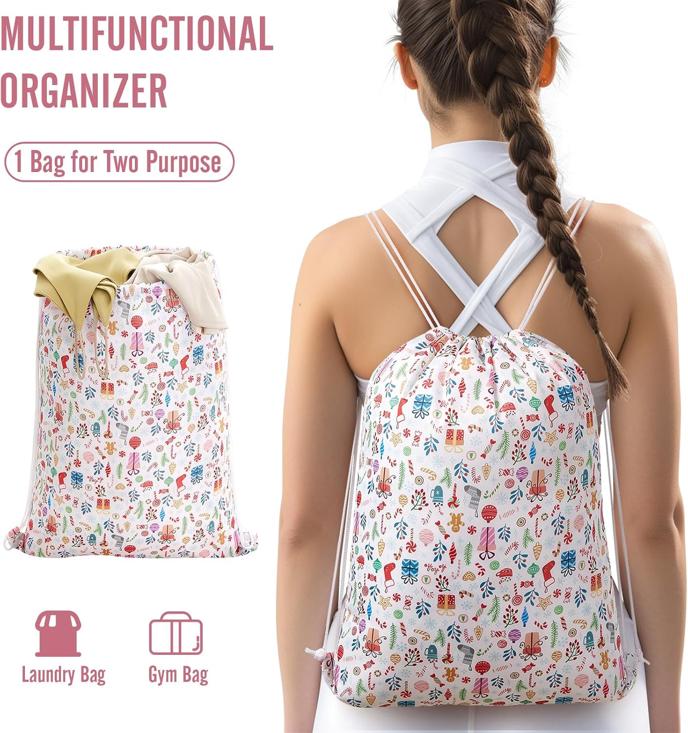 Multi-purpose Travel Essential: Includes a hanging toiletry bag with 5 compartments for organizing toiletries and cosmetics, featuring a convenient hanging design. The versatile laundry bag holds up to 9 garments and transforms into a backpack, perfect for all your travels.