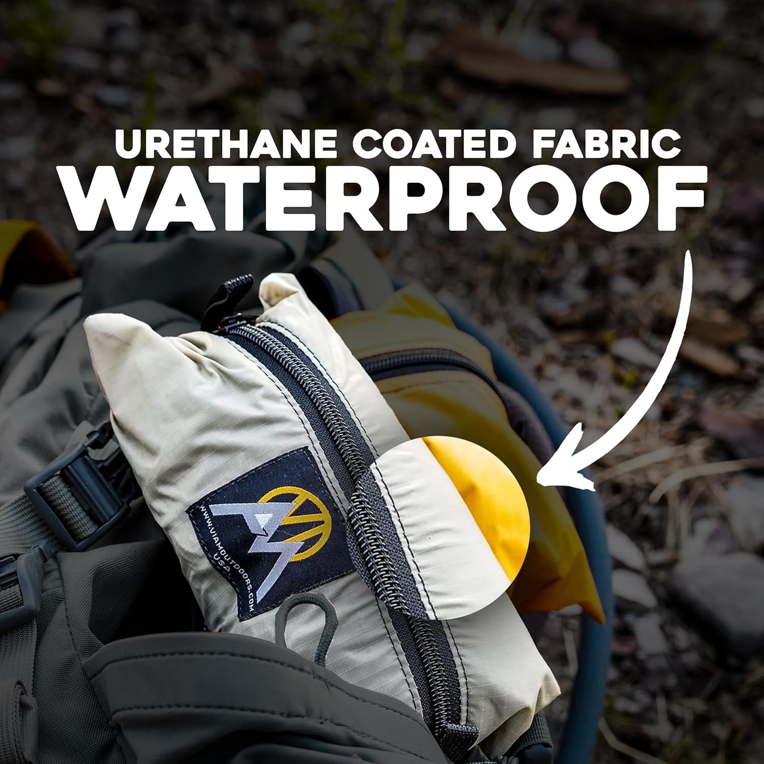 Optimize your pack with G3's Lightweight Glacier Gear Grabs. Weighing just 1.9oz, these pouches feature waterproof zippers and fully seam-sealed construction. Made from Desert Tan urethane-coated, 100% waterproof fabric, they're ideal for stashing and organizing gear on the trail.